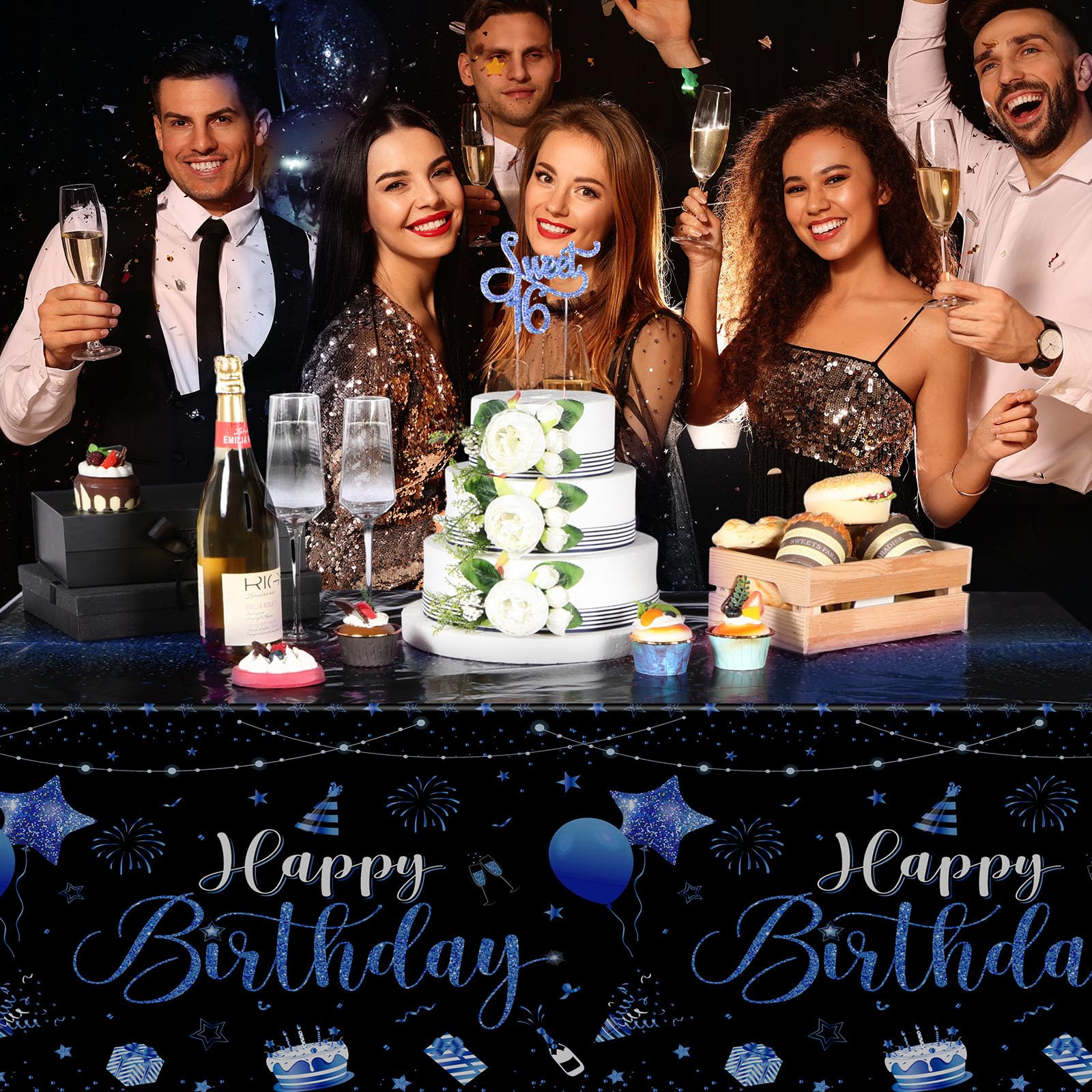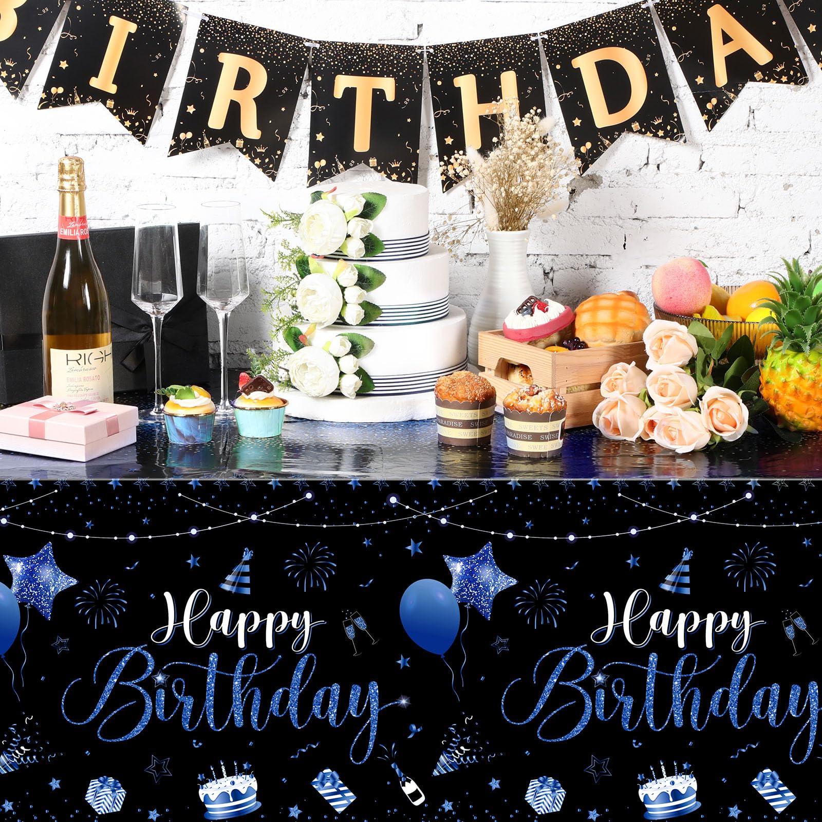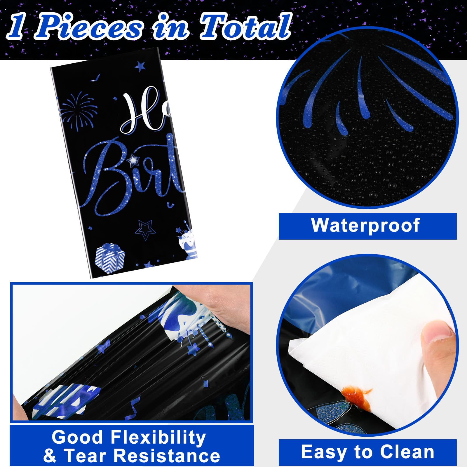 What You Will Receive: the package contains 1 pieces of happy birthday tablecloths in classic black and blue colors, enough to meet your using and replacing needs for holding a birthday party
