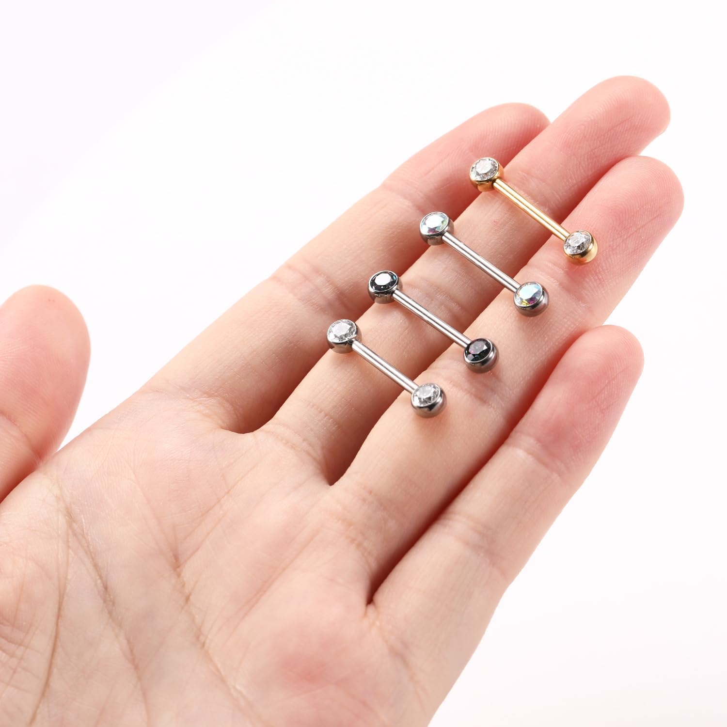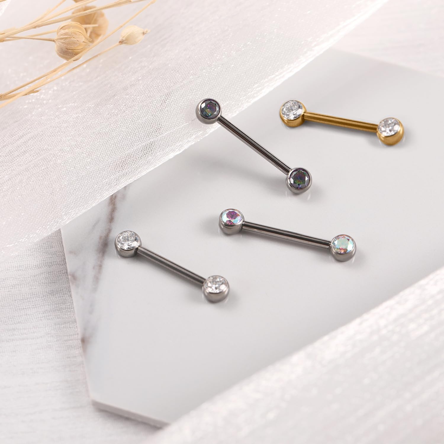Attractive Style: The nipple ring with shiny round CZ on both side,what's more both side can be internally threaded ,make your piercing more attractive
