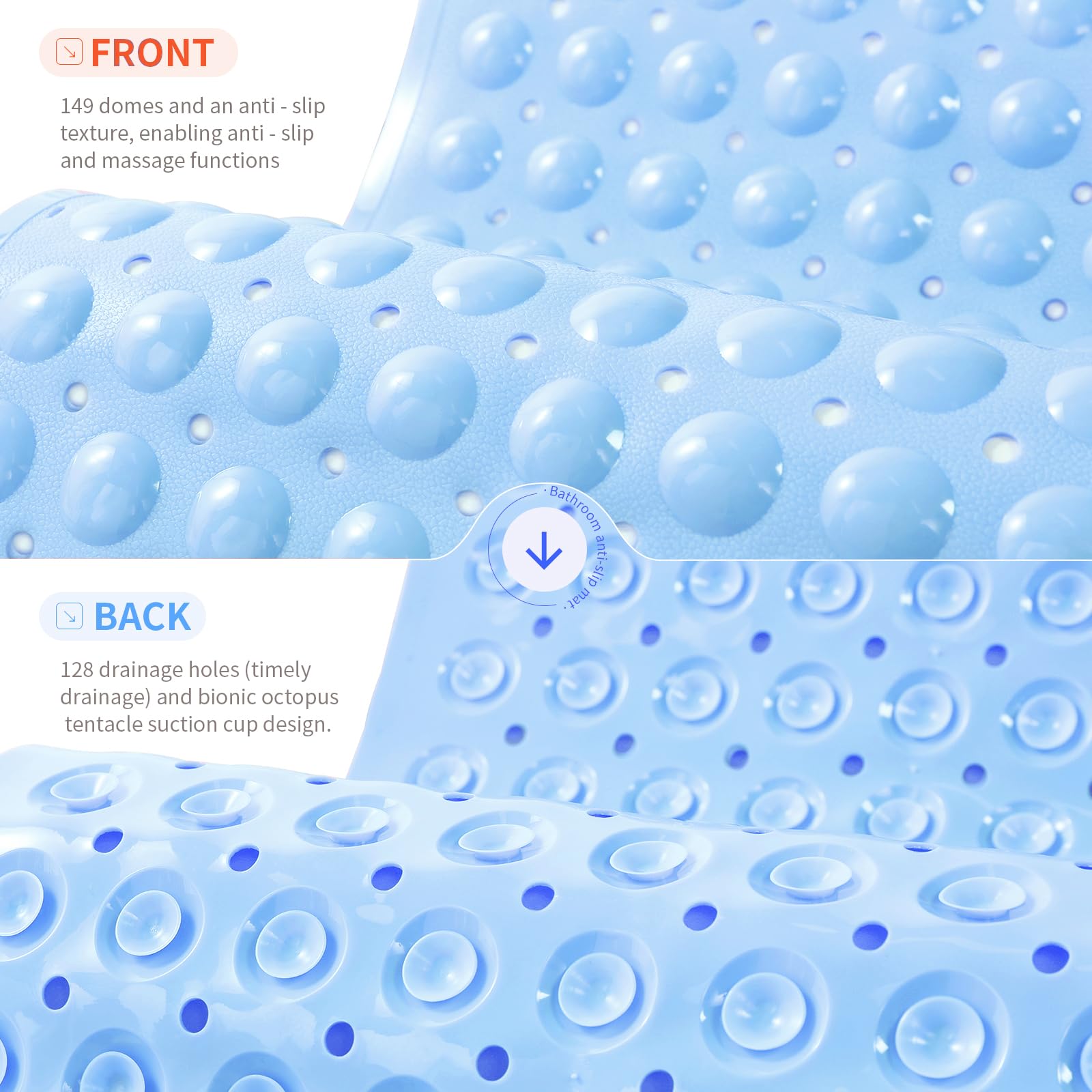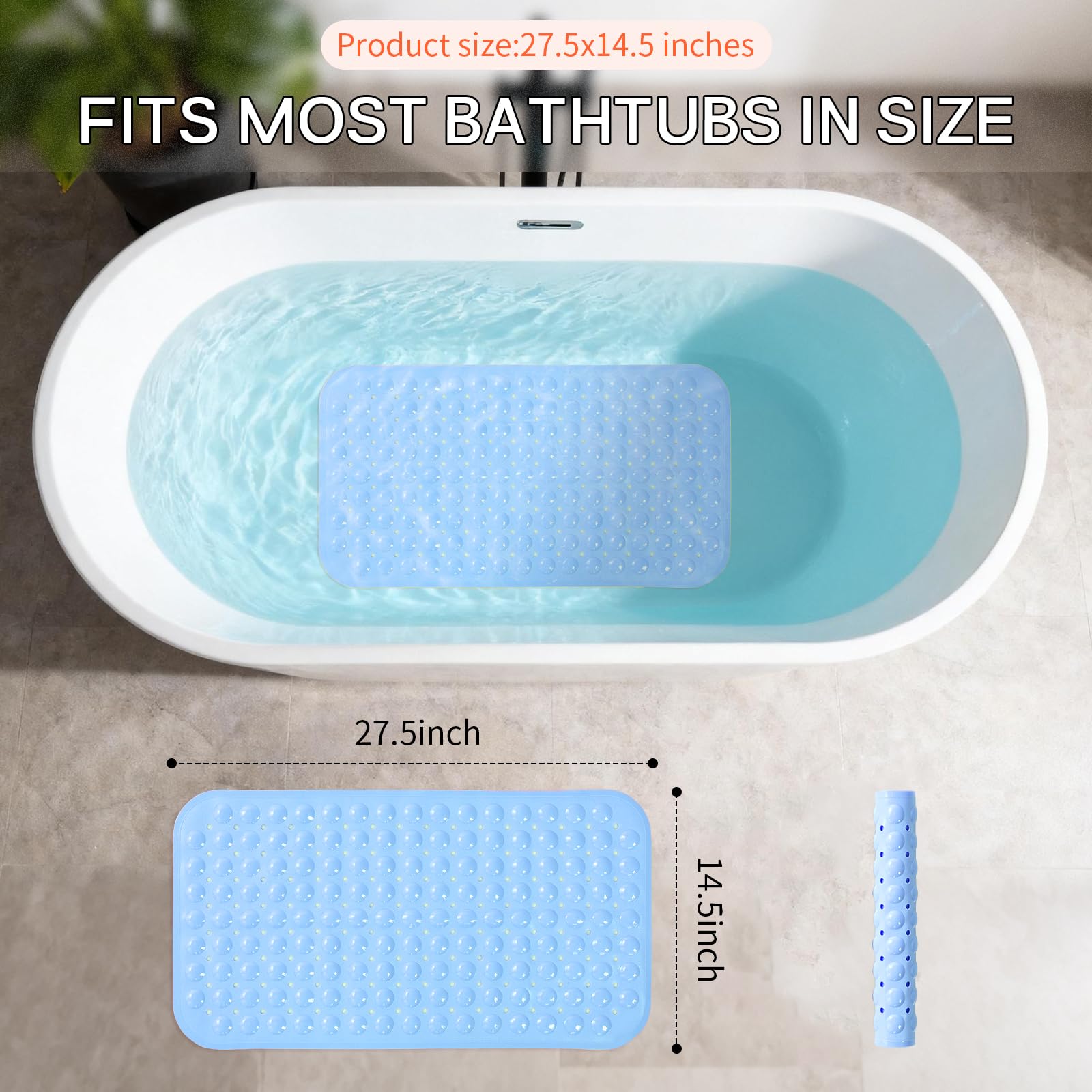 NON-SLIP LARGE BATH MAT: Our non-slip large bathtub mat offers superior coverage with its 27.5×14.5 inch(Approximately 70×37cm, with an error of about 1cm) size, maximum coverage for the bathtub floor. Equipped with 149 special large suction cups, this mat securely stays in place on smooth, clean surfaces, making it ideal for home, spa, sauna, gym baths, and showers.