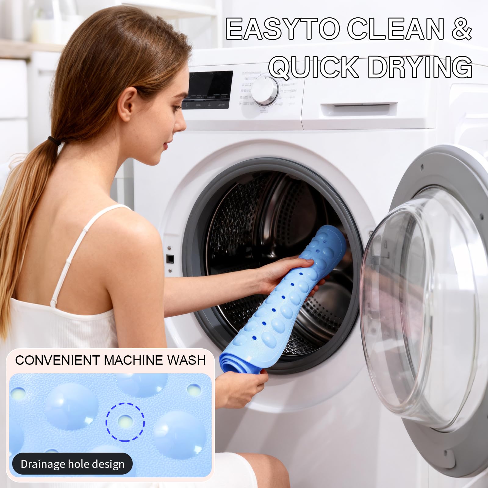 MACHINE WASHABLE: Conveniently machine-washable and easy to maintain, this non-slip bathtub mat can be effortlessly cleaned. Simply toss it into the machine and wash it on a cold water setting. Afterward, hang it to dry. We recommend periodically rinsing and air-drying the shower mat.