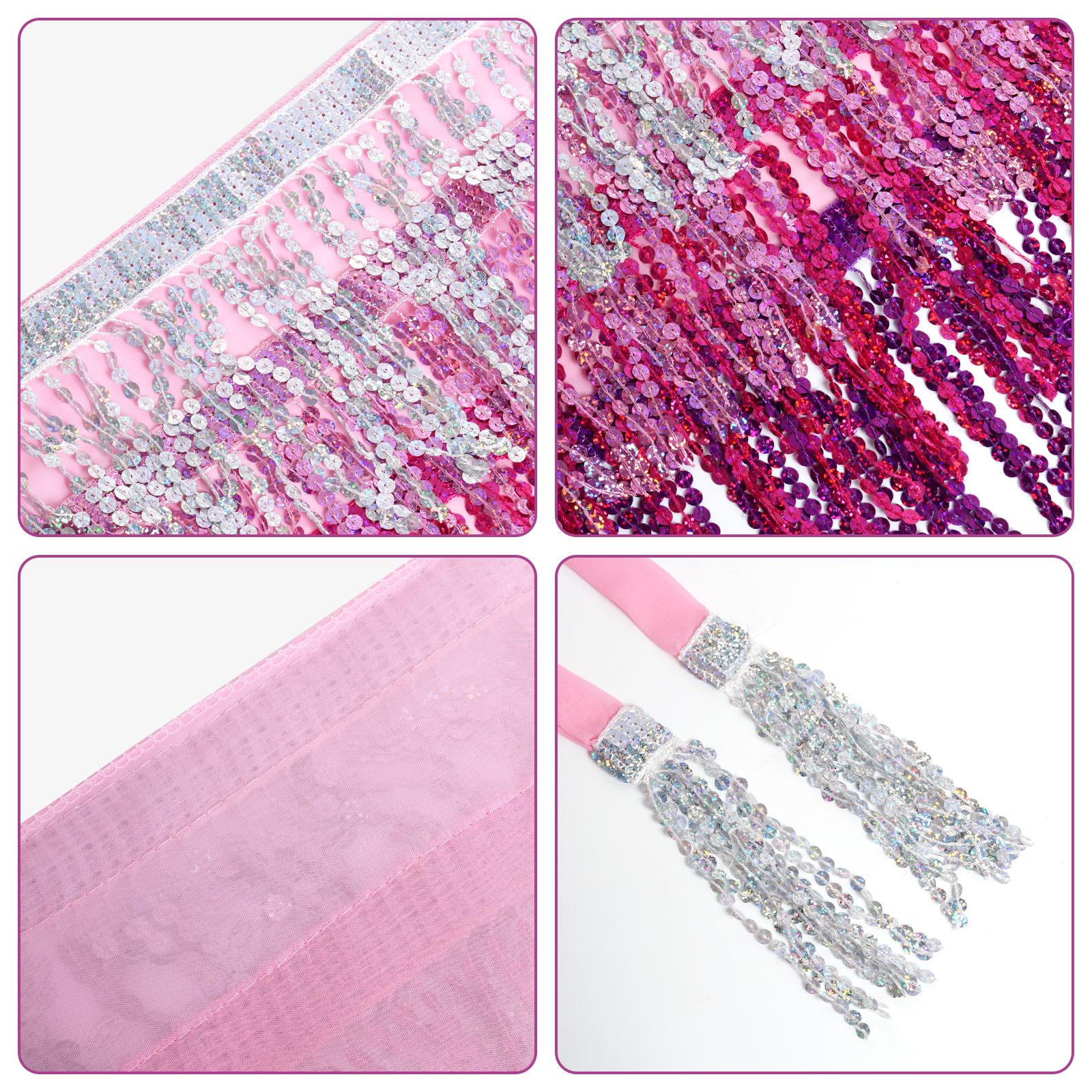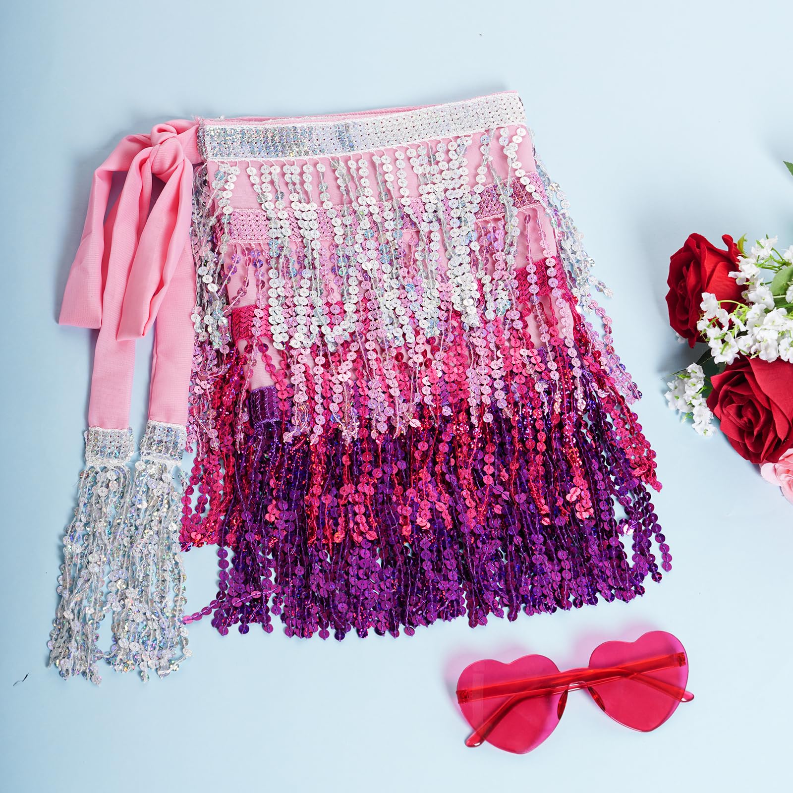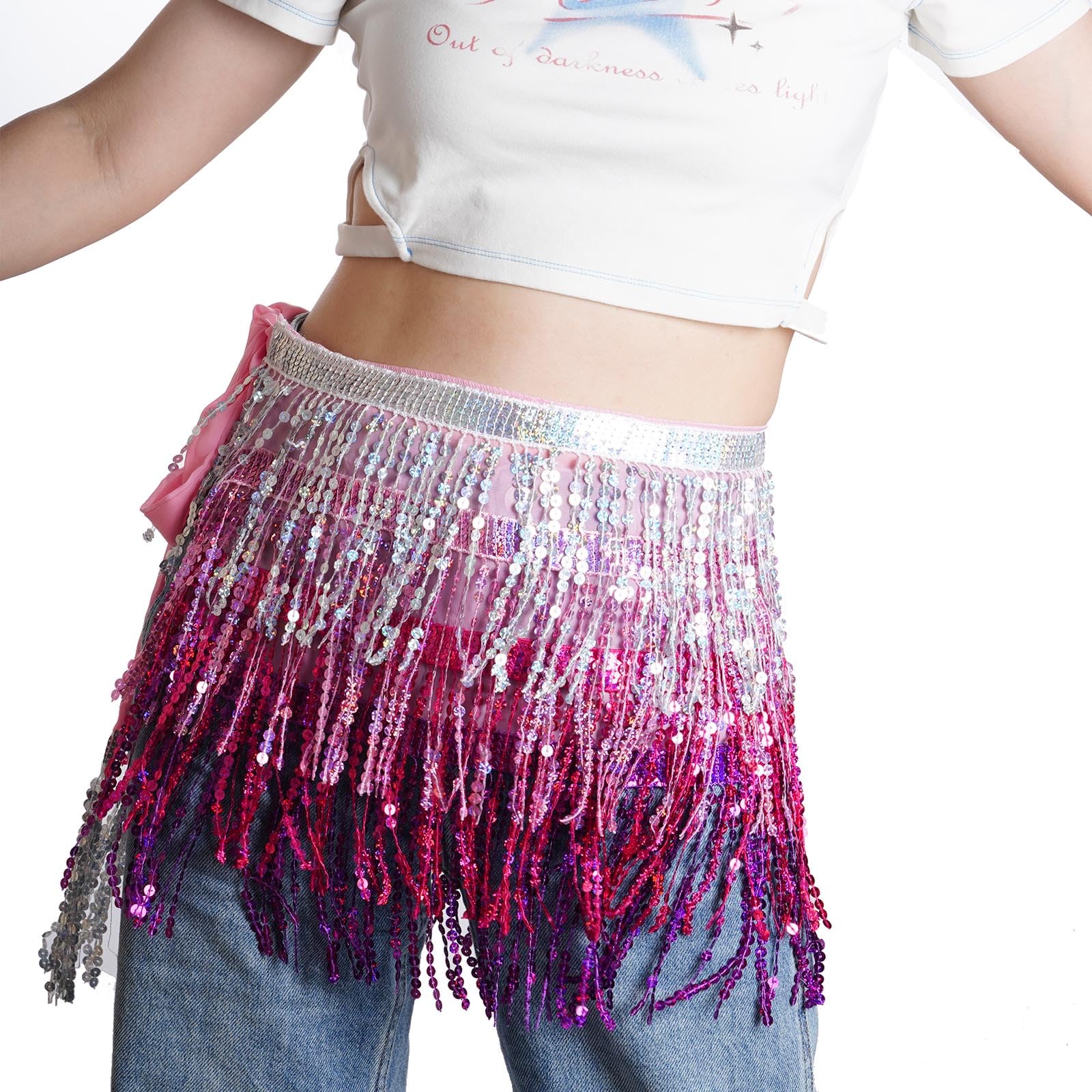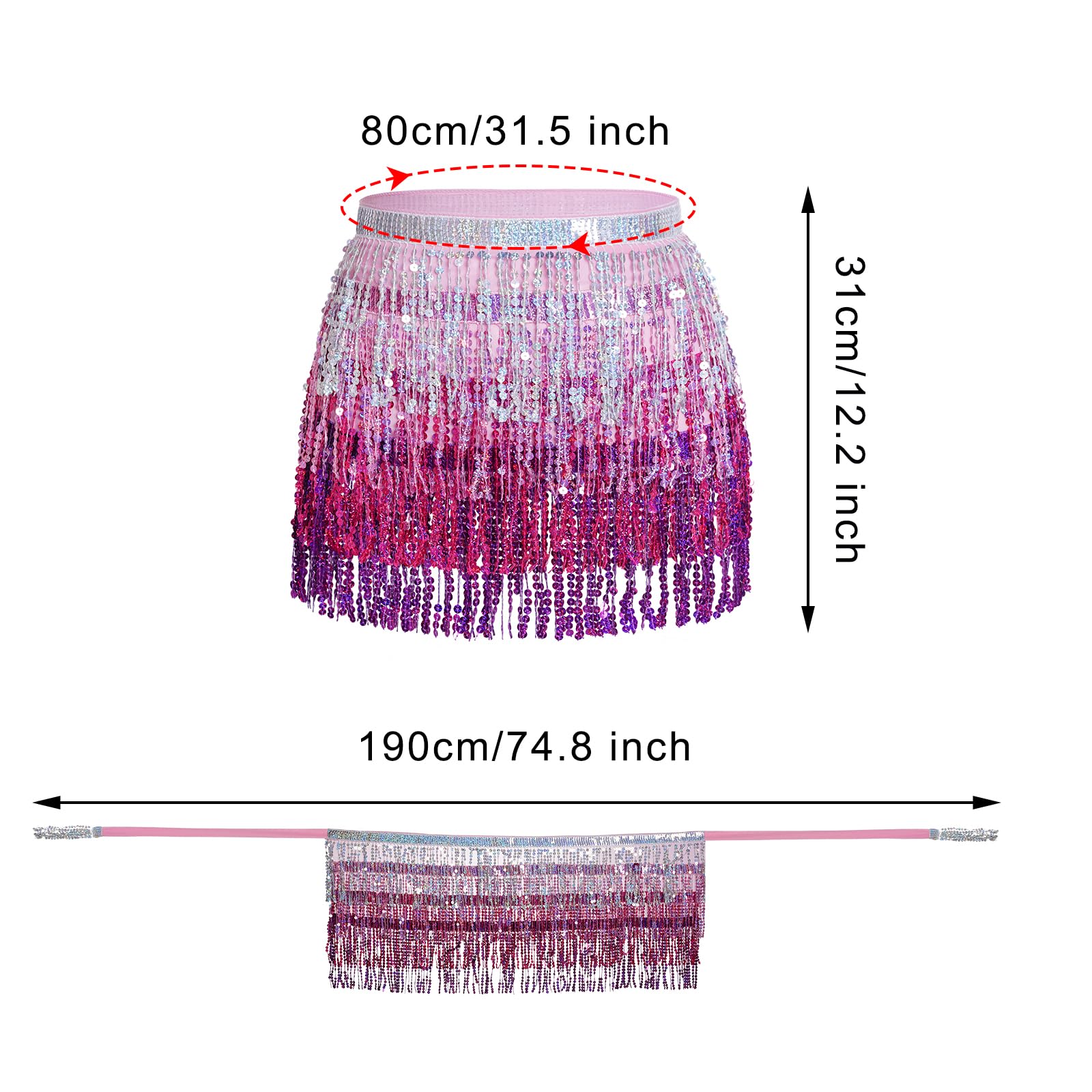 Exquisite Design: This fringe hip scarf has various strands of sequins, reflect any light that shines on its surface, unique and gorgeous, make you be the center of the crowd