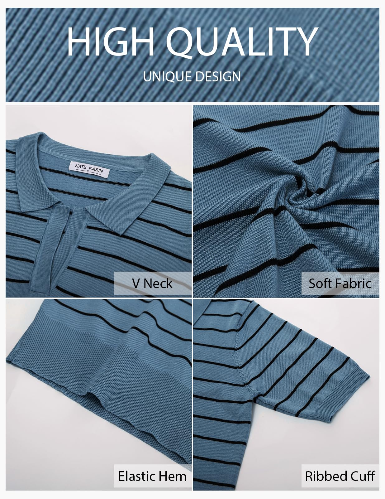 Features: V-neck short-sleeved, loose, casual, striped, ribbed knit pullover. The classic lapel sweater never goes out of style