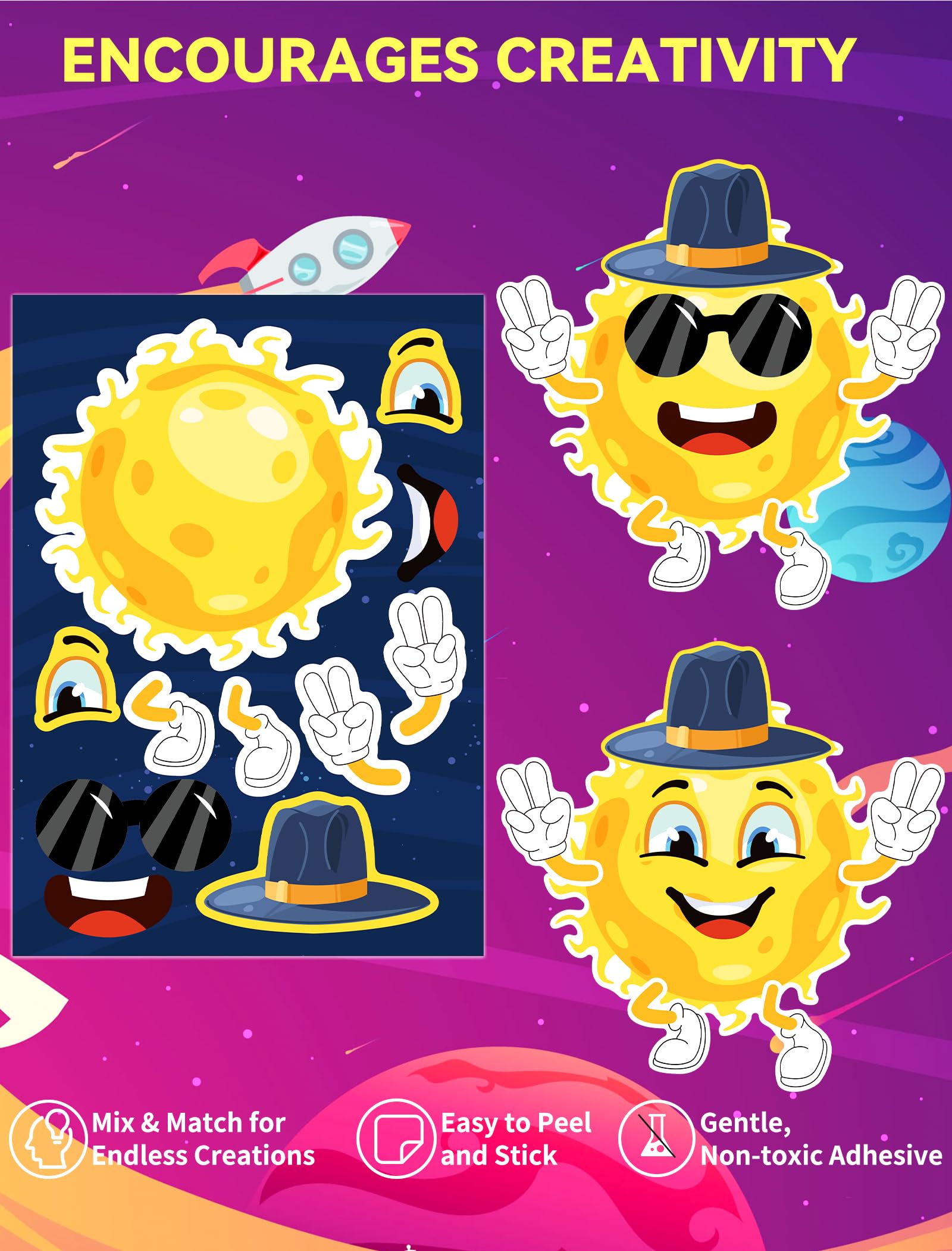 βοΈVersatile: Our adorable Universe stickers serve as engaging educational tools for kids to learn about space.They make perfect birthday gifts, party favors, or additions to fun classroom activities, offering kids the opportunity to create their own alien, astronaut, planet, or spaceship masterpieces!