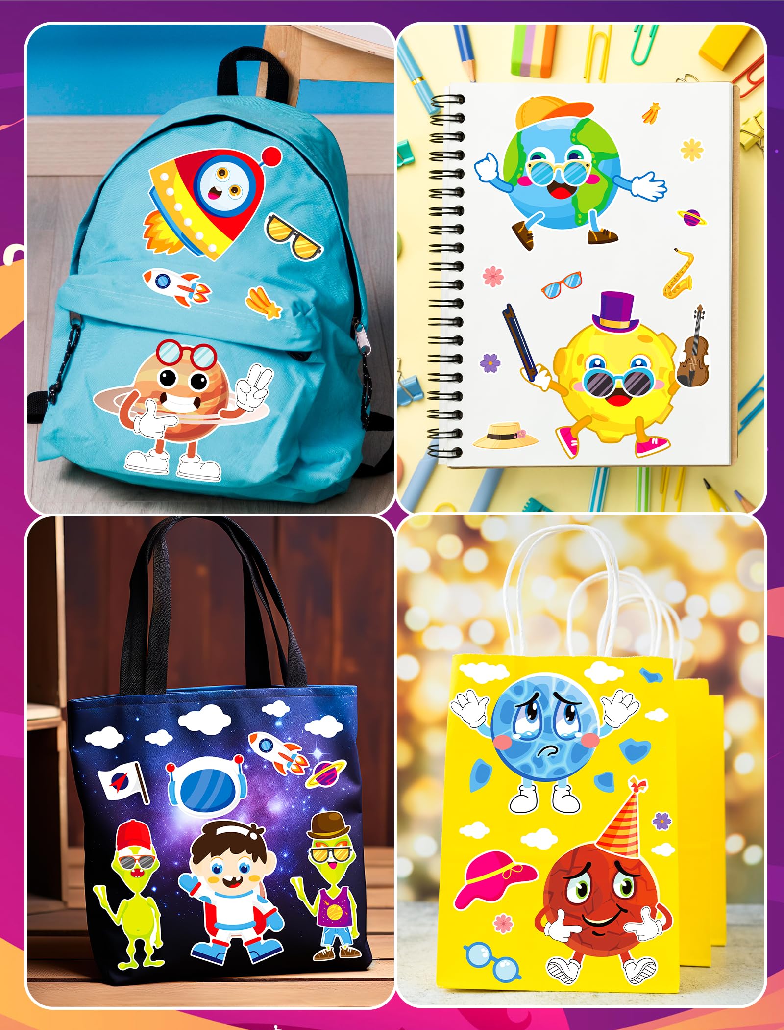 πEasy to Use: Our space stickers can be effortlessly attached to any smooth surface, including gift bags, scrapbooks, luggage, book bags, tables, and crafts.