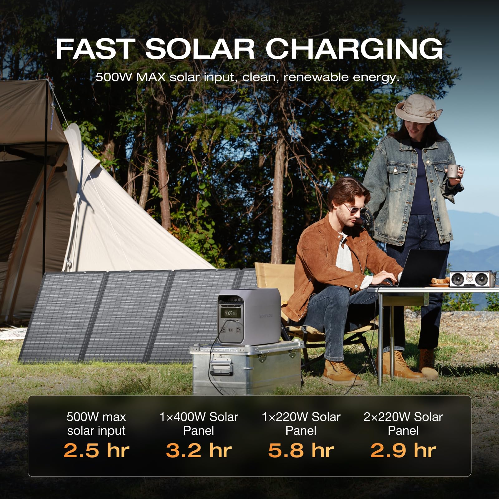 Fast Solar Recharging: Recharge in just 3.2 hours with a 400W solar panel. Clean, renewable energy lets you stay powered wherever the sun shines—perfect for off-grid living or outdoor adventures.
