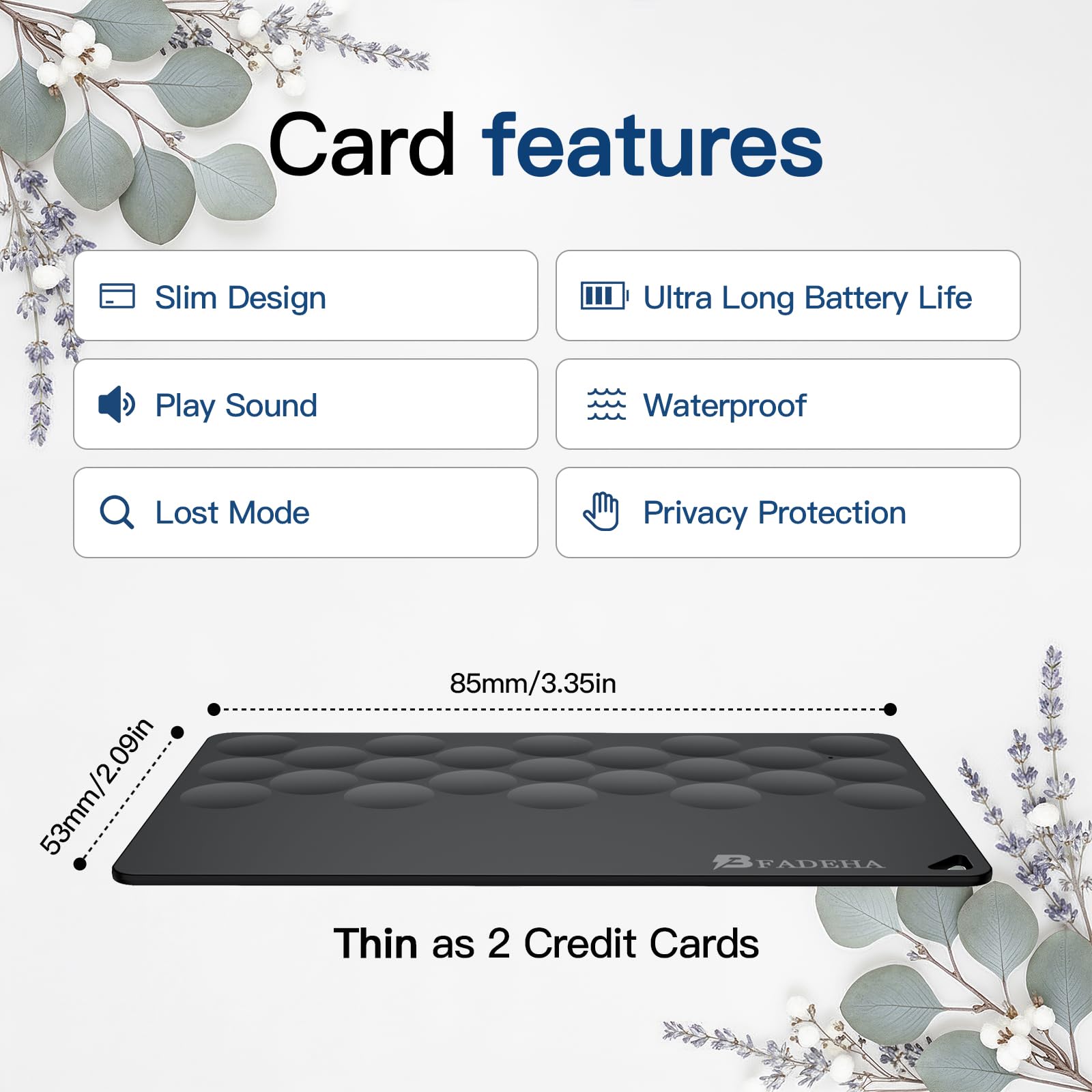 Slim, Durable & Wallet-Friendly Design - Apple MFI Certified ultra-thin card fits easily in any wallet without adding bulk or taking up extra space. This Smart Tag Tracking Device is built to last — IP67 waterproof, scratch-resistant. Includes full privacy protection and a worry-free replacement guarantee.