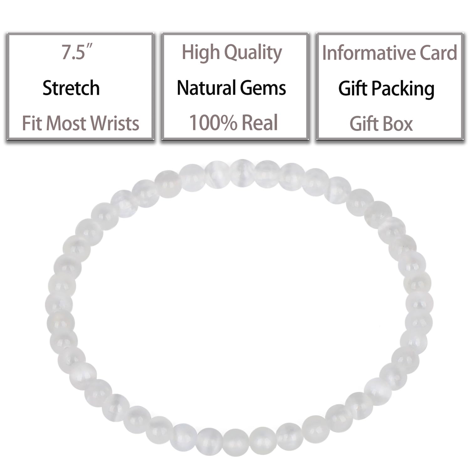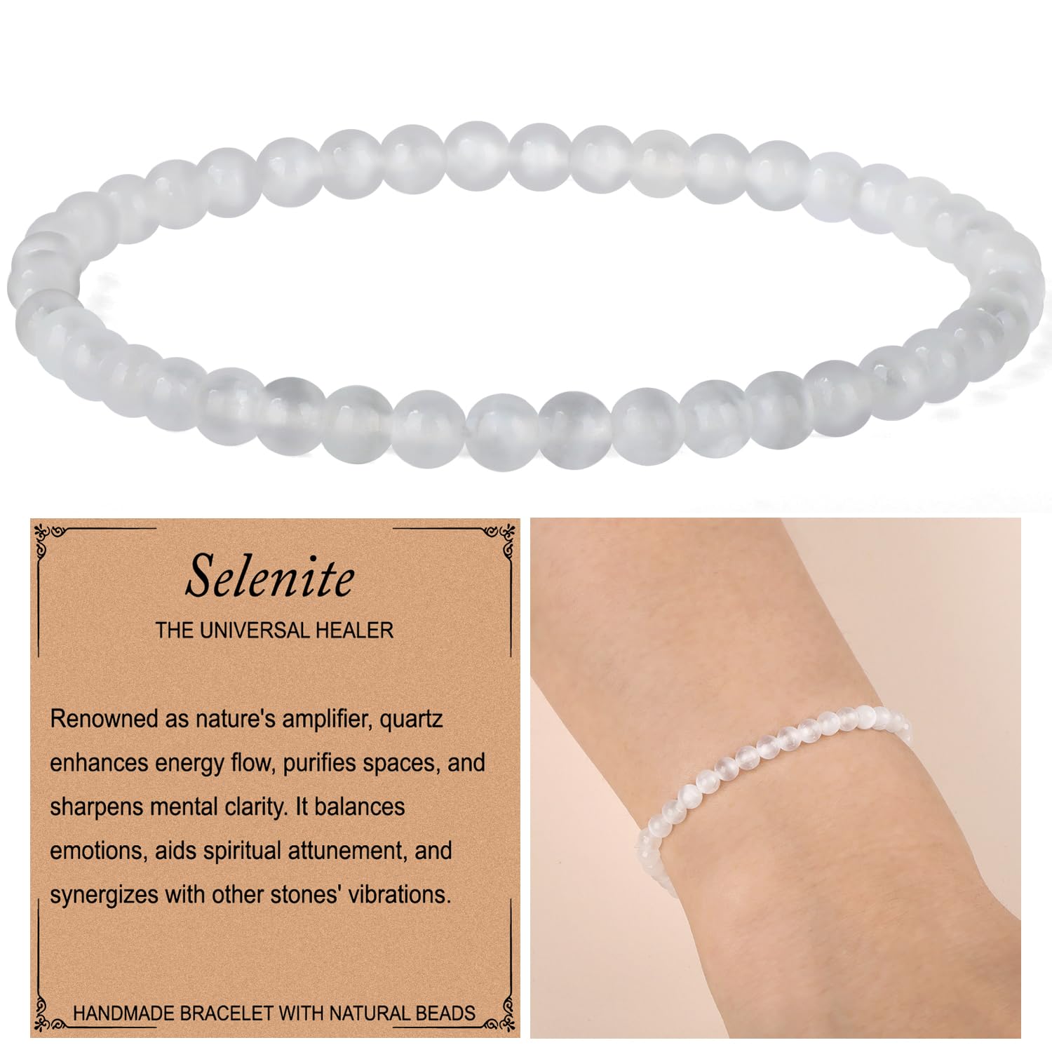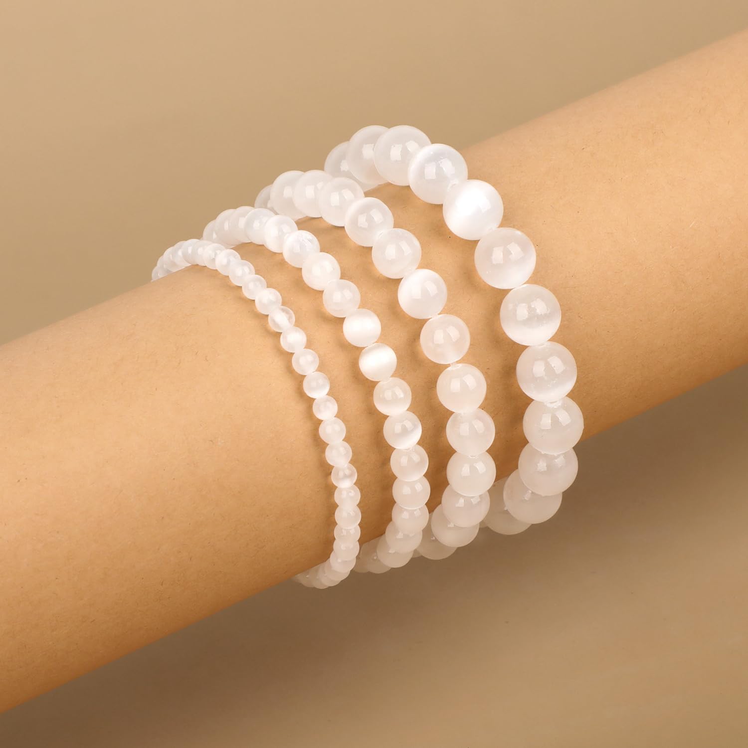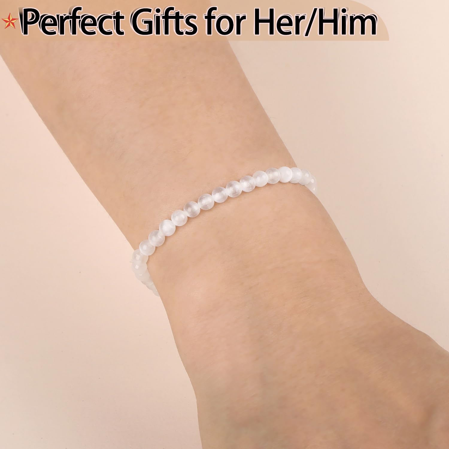 High Quality Beaded Bracelet: The bracelet is made of 4mm natural genuine selenite beads and has been carefully selected manually one by one.