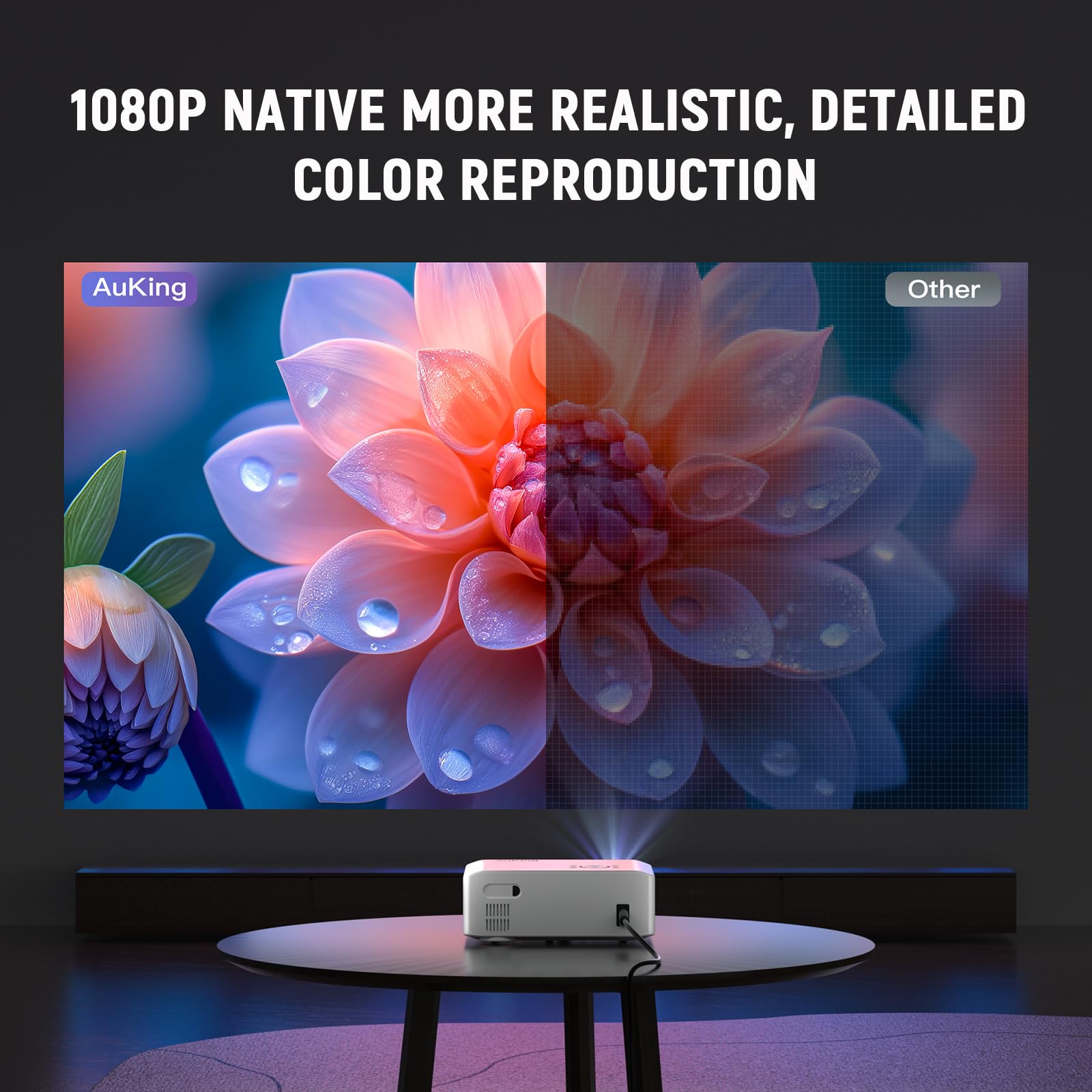 【Mini Tripod & Built-in Speaker】AuKing home projector supports a screen size of 35-200’’, perfect for creating a cinematic atmosphere. Projector with tripod offers the freedom to position your projector at the ideal height. Video projector built-in speaker to enjoy powerful and dynamic audio that enhances your entertainment experience whether it's at home, or during kids' parties.