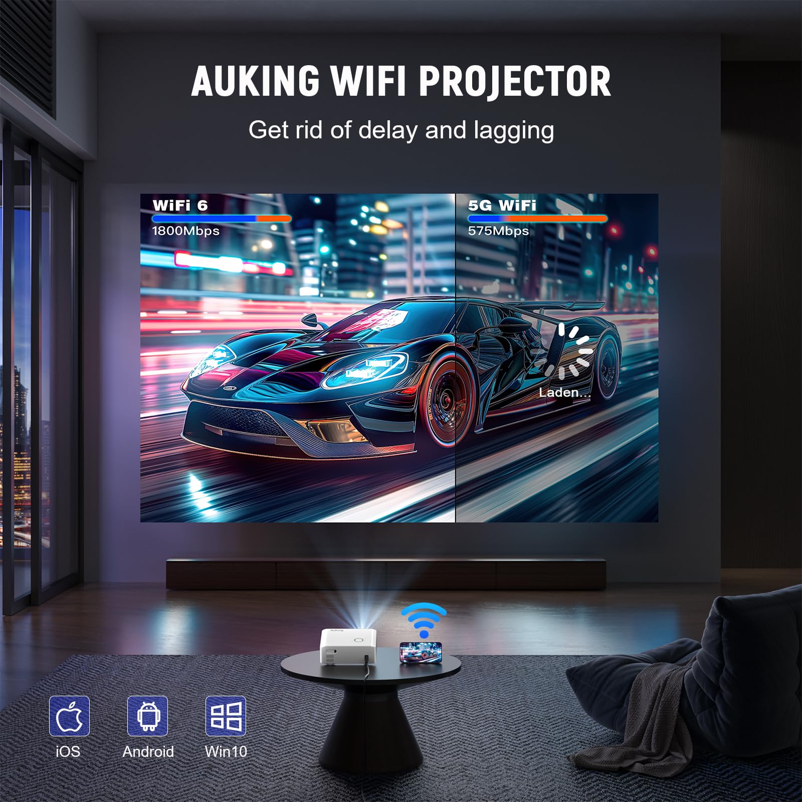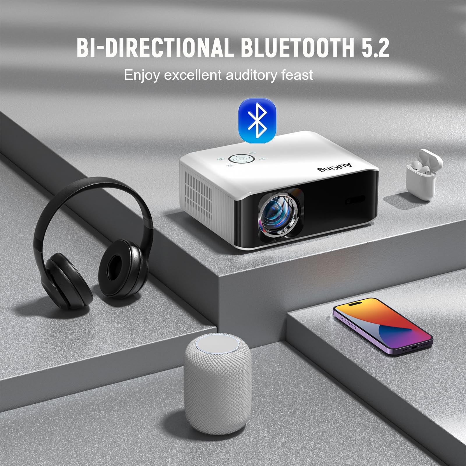 【Projector with Wi-Fi and Bluetooth】AuKing Bluetooth projector features a 5.2-inch wireless display and supports iPhones, Android smartphones, Bluetooth headphones, Bluetooth speakers, and more. The Wi-Fi projector uses dual-band Wi-Fi technology, freeing you from the shackles of cables. Use Wi-Fi to mirror your phone or tablet screen to the projector! Play slideshows, watch live streams, or play games.