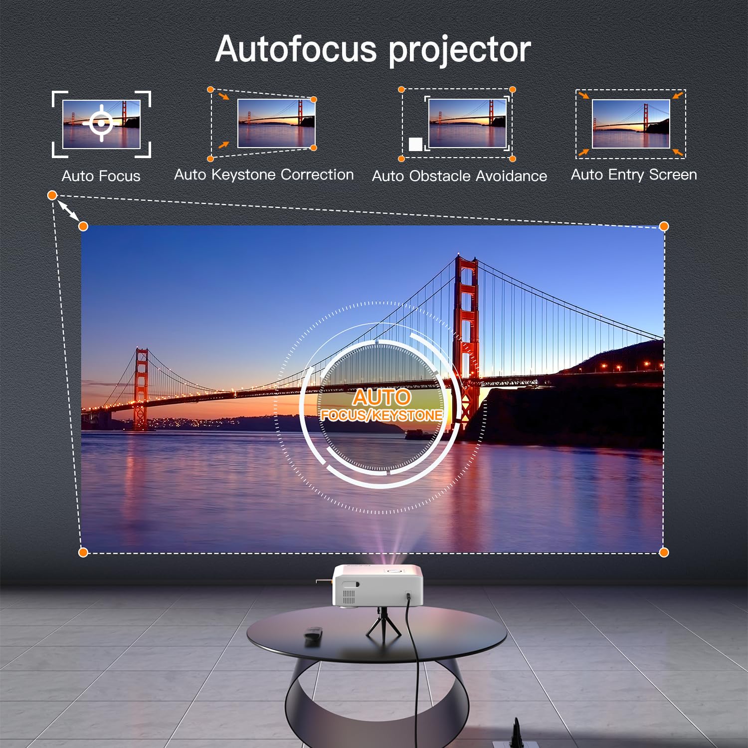 【Auto Focus Projector】This smart projector with WiFi and Bluetooth integrates fast auto focus and keystone correction technology. Save the trouble of manual adjustment; whether it is immersive movies or intense games, this projector with wifi and bluetooth can meet your needs.