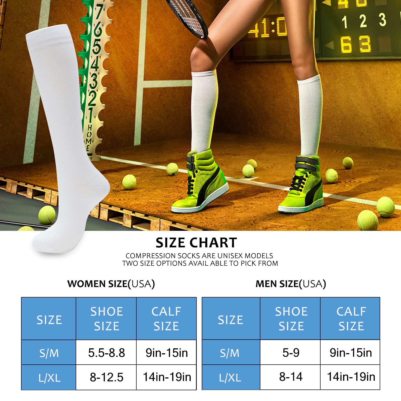VERSATILE STYLE FOR ALL OCCASIONS: Our compression socks for men and women fit various lifestyles. Whether you're running, traveling, nursing, flying, pregnant, or need muscle support, these long compression socks men have you covered with high-quality performance. Suitable for all sports, cycling, skiing, mountain climbing, football, hiking, jogging, tennis, marathon, hockey, soccer, basketball, golf, etc. From daily wear to special occasions, experience lasting comfort.