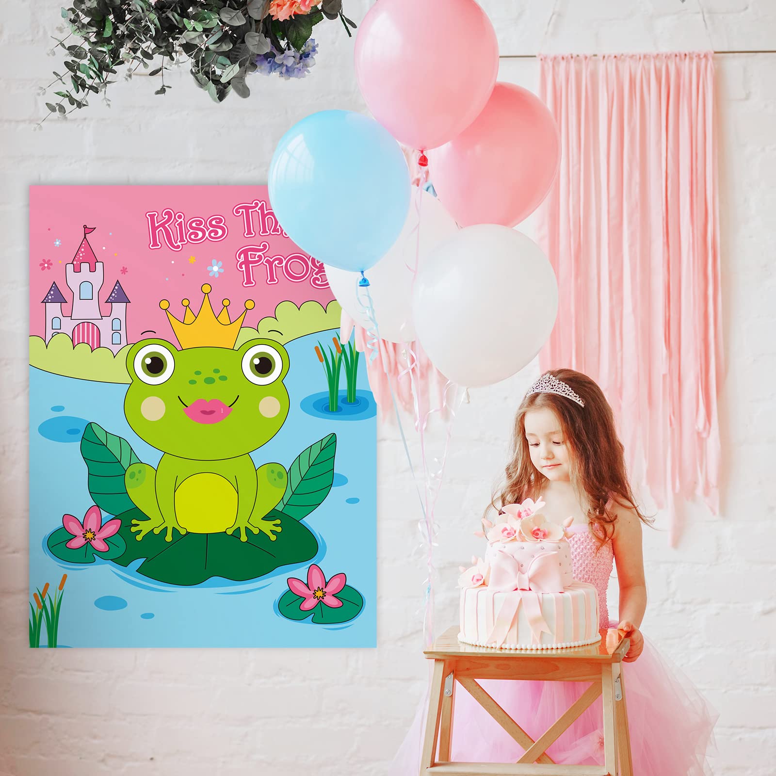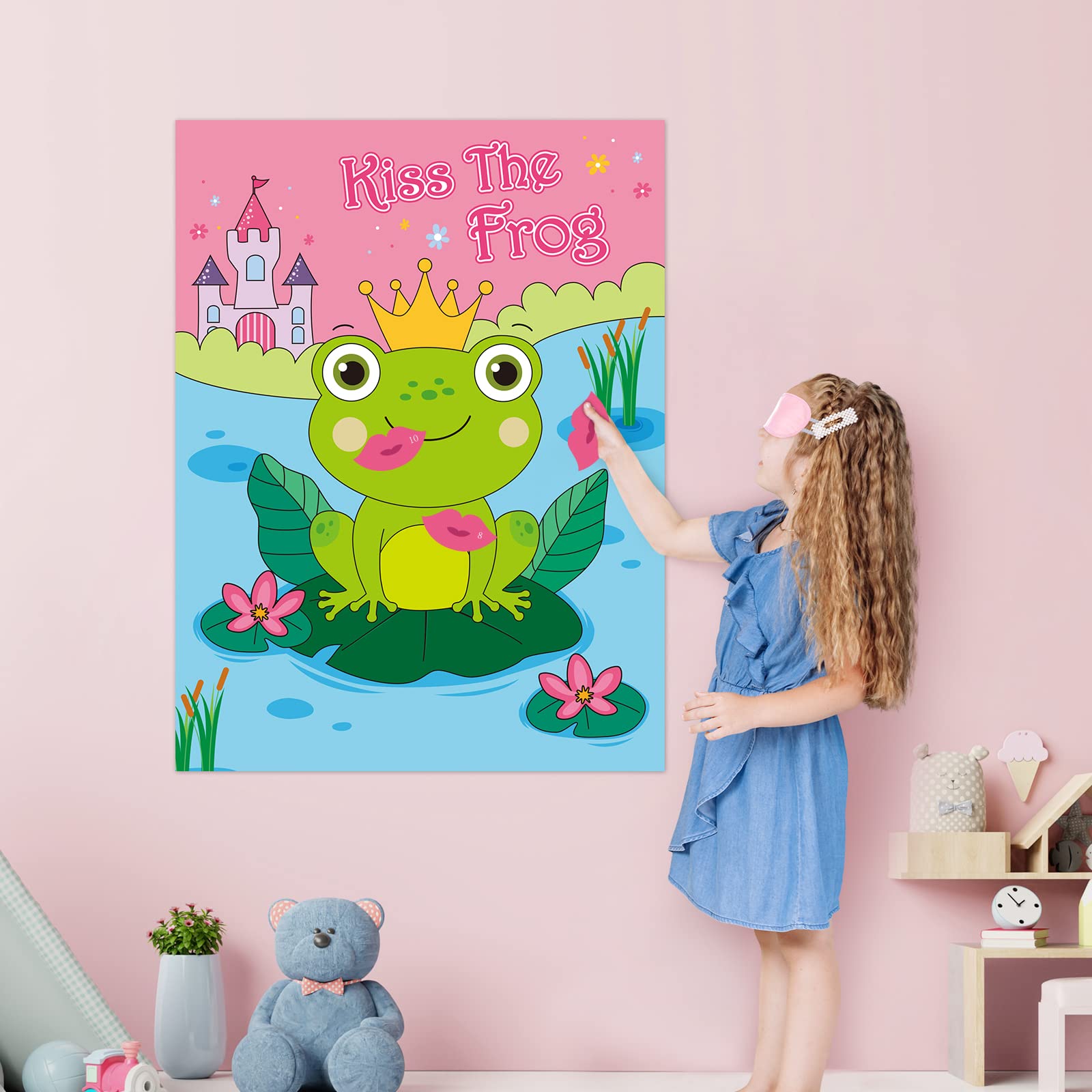 PARTY GAME & HOME DECOR - Pin Kiss on That Frog is not just for Valentine's Day parties, but for all kids' parties, girls birthday parties, princess parties, frog parties, classroom activities, school play, family reunion party and all holiday dinners. Can also be used for wall decorations, used in bedroom and classroom decoration.