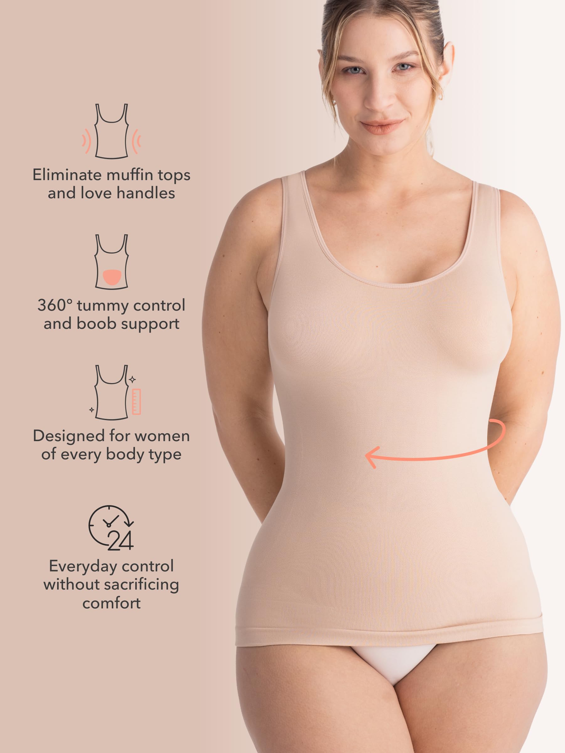 HIGH COMPRESSION WOMEN'S CLOTHING FOR A SCULPTED LOOK: This shapewear tummy control top smooths your tummy, waist, and back, creating a sleek silhouette. Size up your tank top for comfort or stick to your usual size for a firm sculpting effect that stays in place all day.
