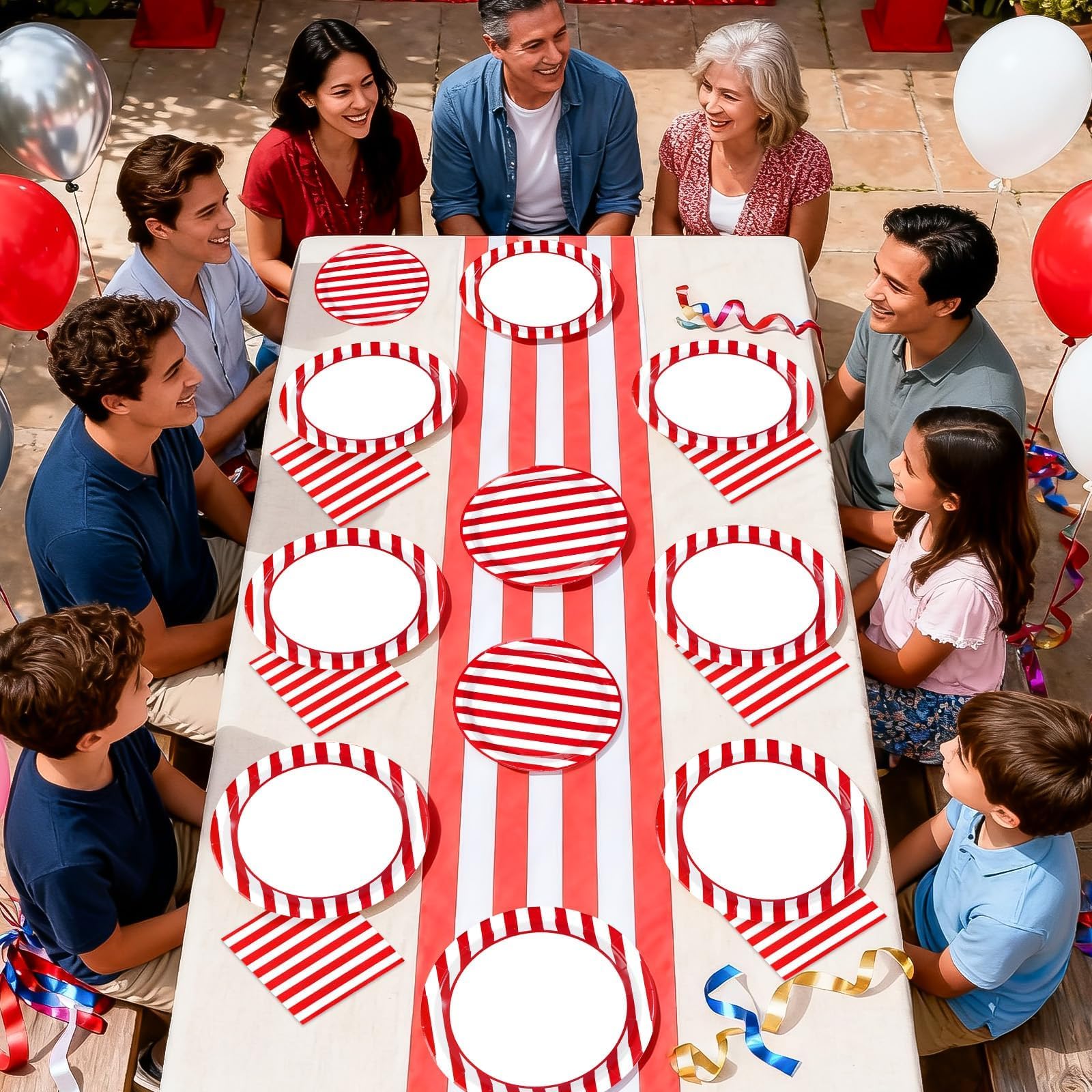 Save Time: This red and white stripe party supplies are an ideal replacement for traditional party plates. You only need to dispose of the red and white theme dinnerware set after use, no need to wash the dishes and other tedious tasks.When the party is over, you can spend more time with family or friends and less time cleaning up