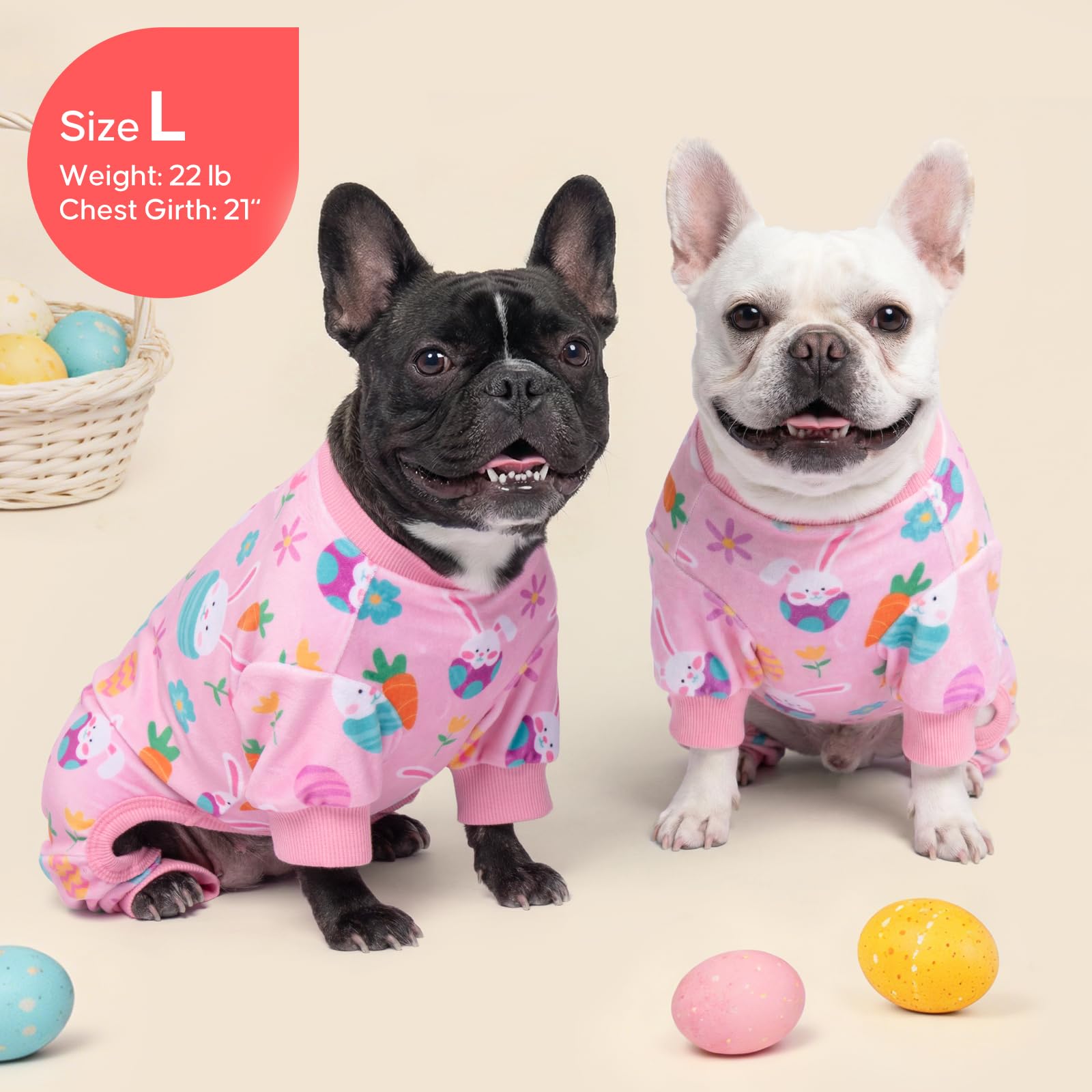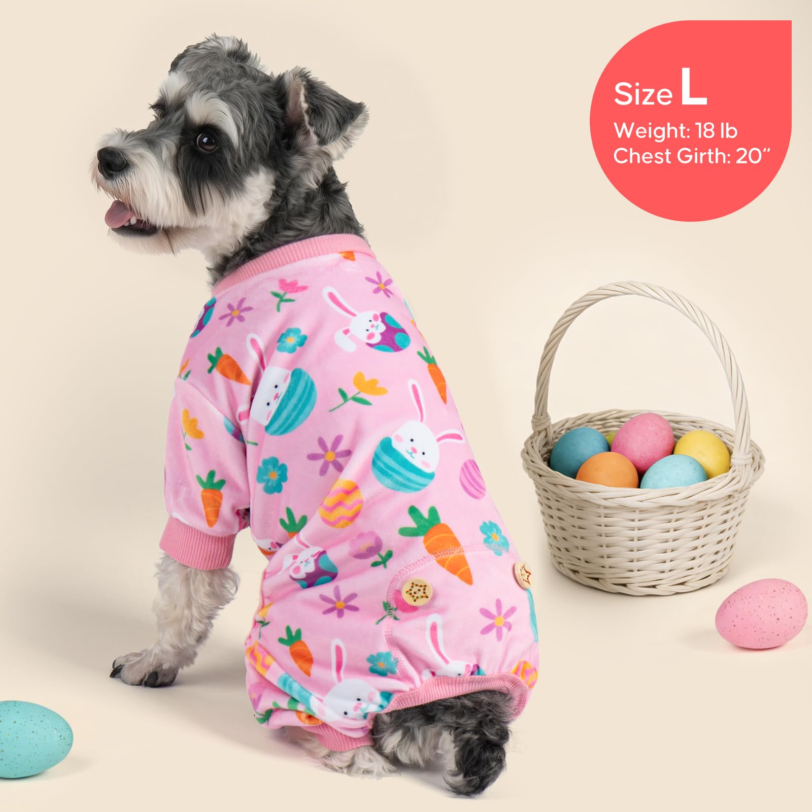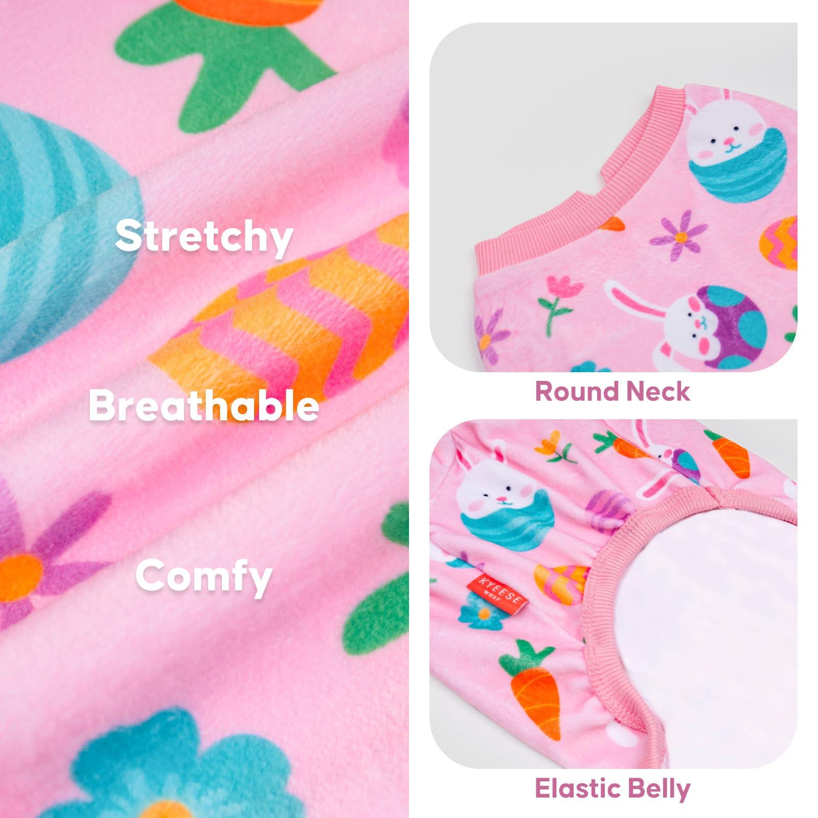 Adorable Easter Design: These pink dog pajamas feature cute bunnies, eggs, and carrots, bringing cheerful holiday vibes to spring celebrations, family photos, festive gatherings, and cozy sleepovers. Perfect for celebrating the season in comfort and style