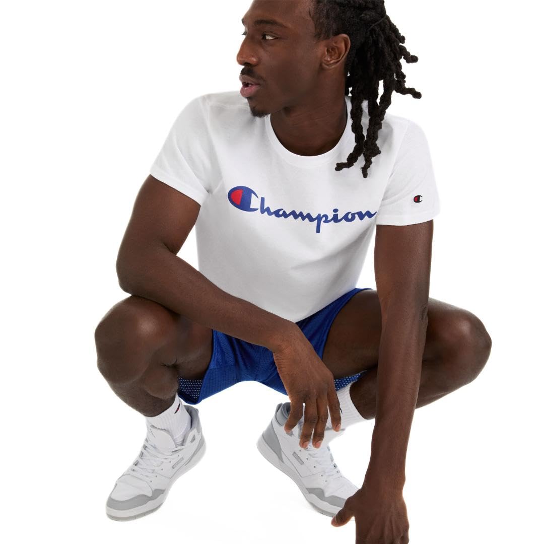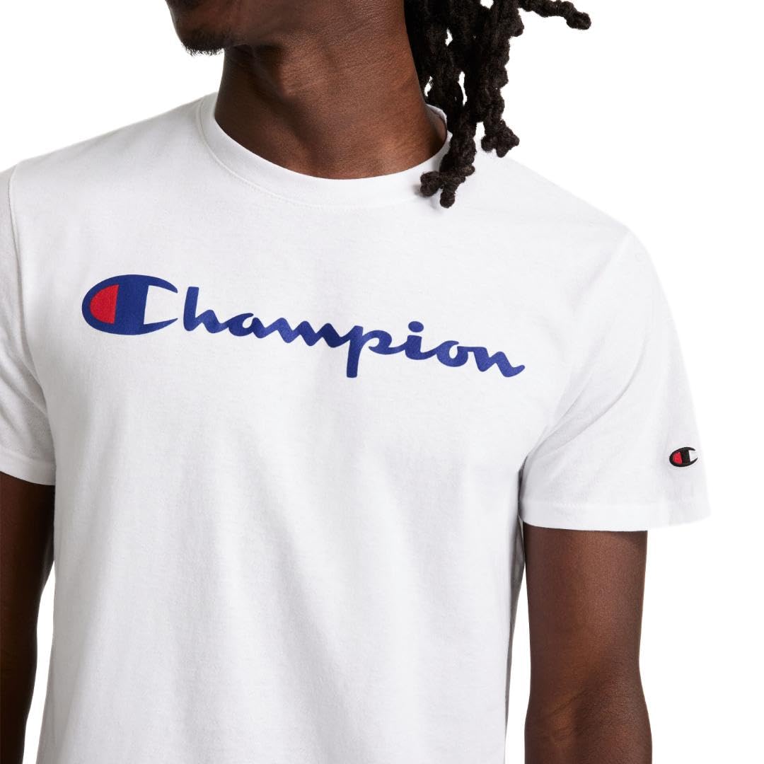 Description Our Champion heritage tee, available in solids and prints, is heavyweight 7 ounce. Jersey fabric. Champion graphics are truly inspired by our archives and our long history of athletic wear. Champion - a step above.