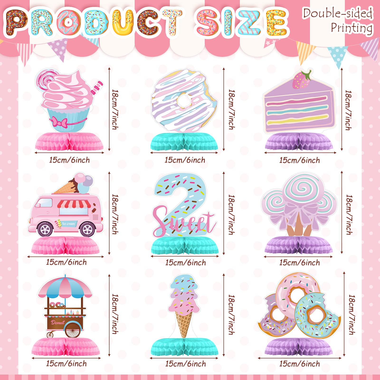 Package Includes: you will get 9 pieces of donut two sweet birthday decorations table honeycomb centerpieces in 9 different styles, which are very suitable for your kid's donut two sweet birthday party supplies