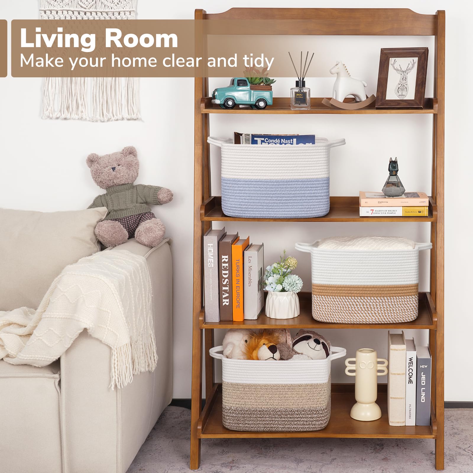Soft Material: The toy organizer basket is made of cotton rope. Our rope basket soft yet sturdy enough to stand up on their own and the bottom will never collapse