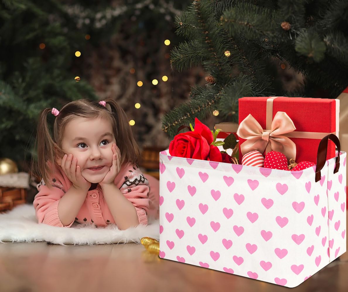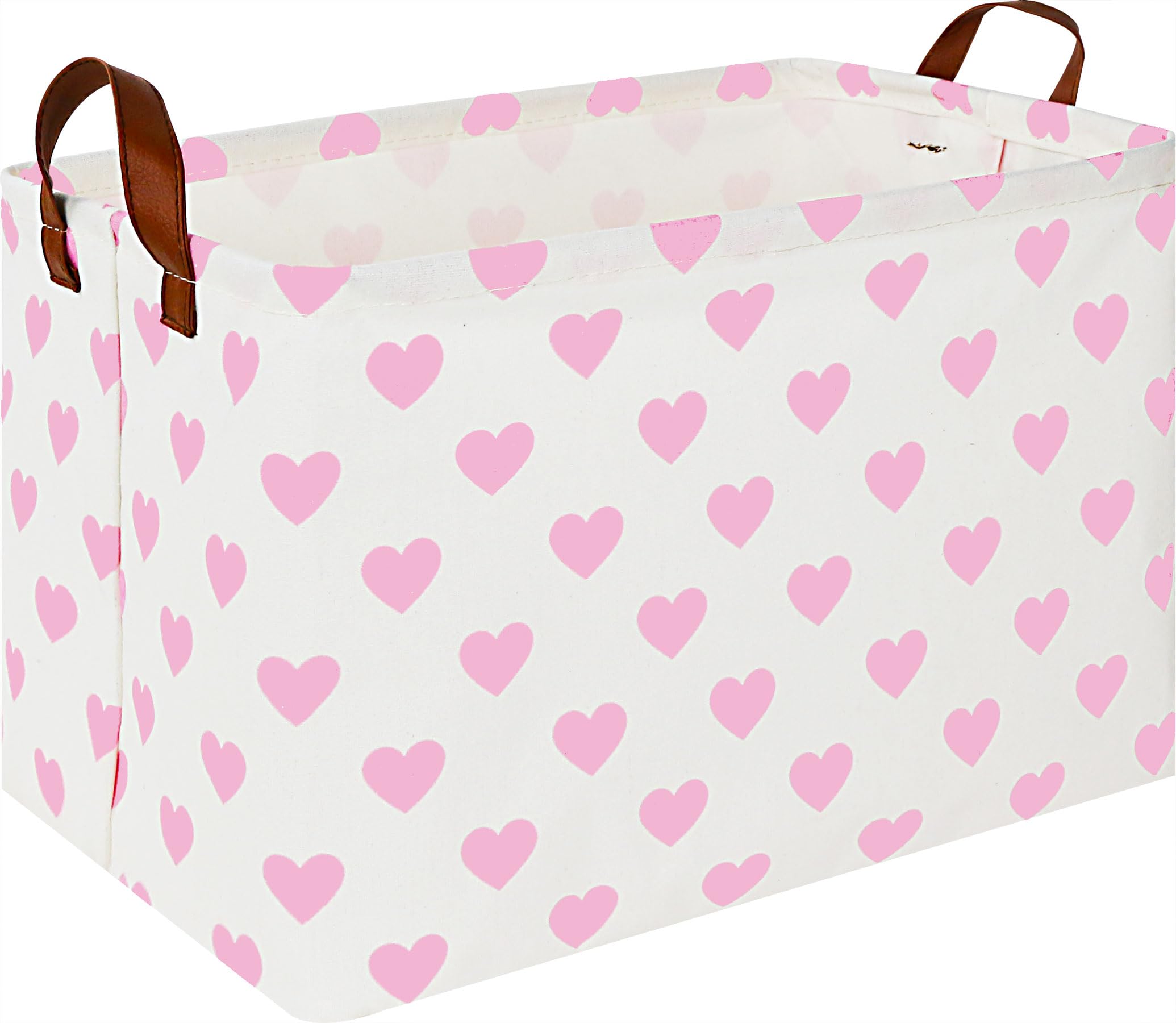 FOLDABLE BASKET SIZE: 14.9βLΓ10.2βWΓ9.8βH inches. Save on space when not in use and fold flat for easy storage, Perfect for gift basket,birthday gift basket for girl friend,baby shower gifts, toys, books, clothes, games, baby doll accessories, or match-box cars.
