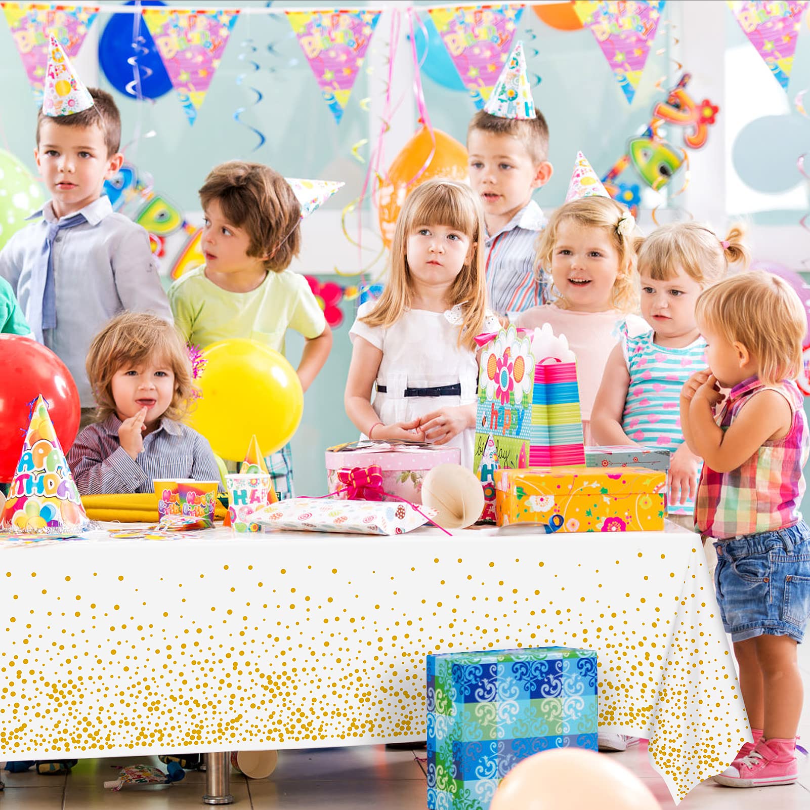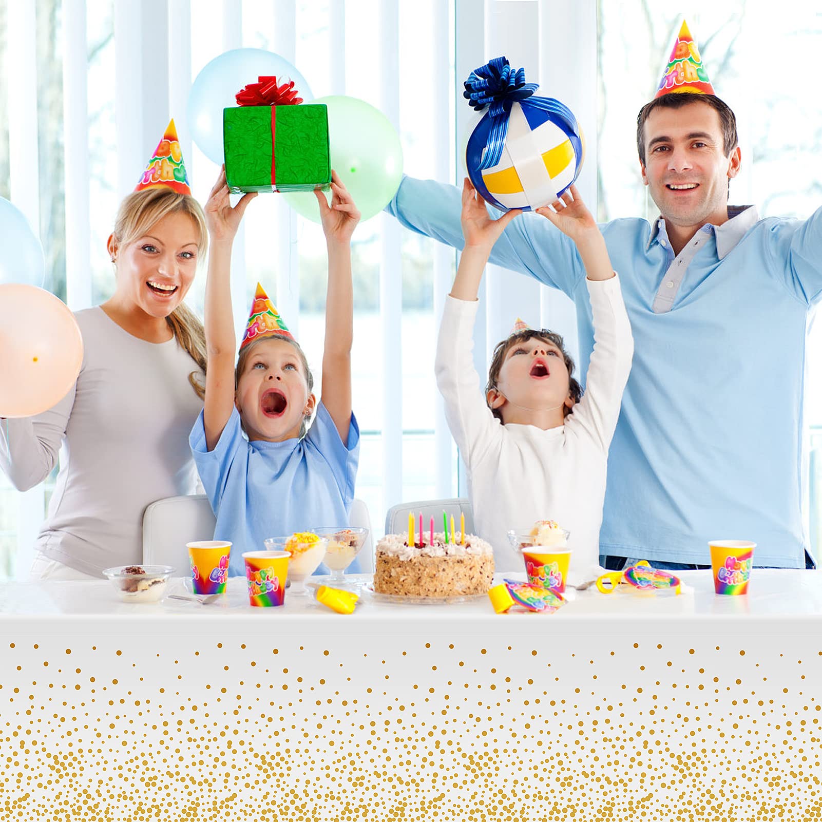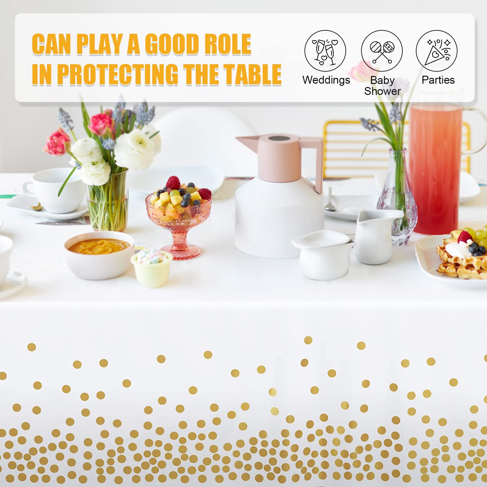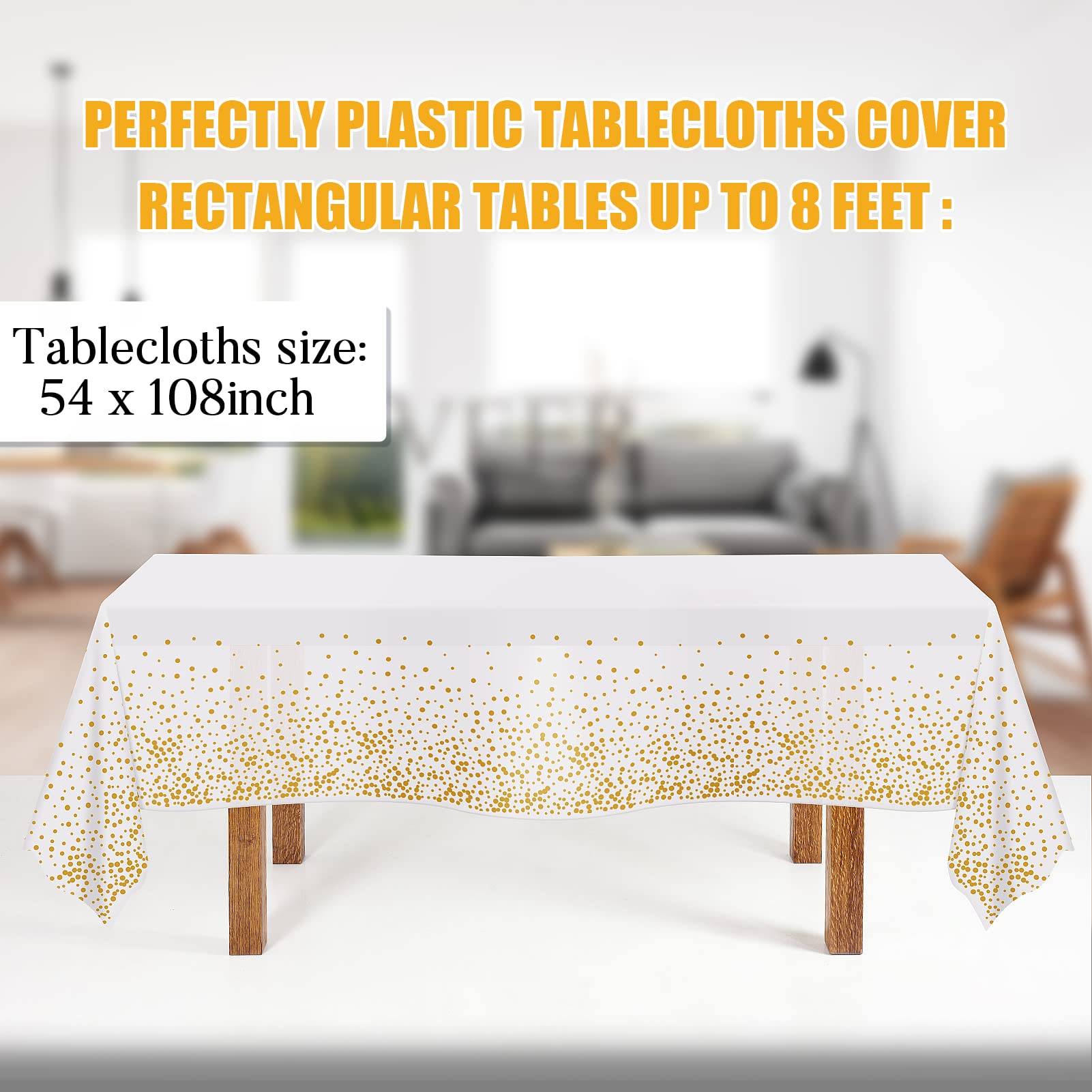 Simple Tablecloths for Rectangle Tables: The plastic table cloth is made of quality PEVA, natural and soft with good abrasion resistance, good drape, natural beauty. These tablecloths are perfect for engagement party decorations, first communion decorations, table cloths for parties, gold birthday decorations, table decorations for party, gold party decorations and other different party themes