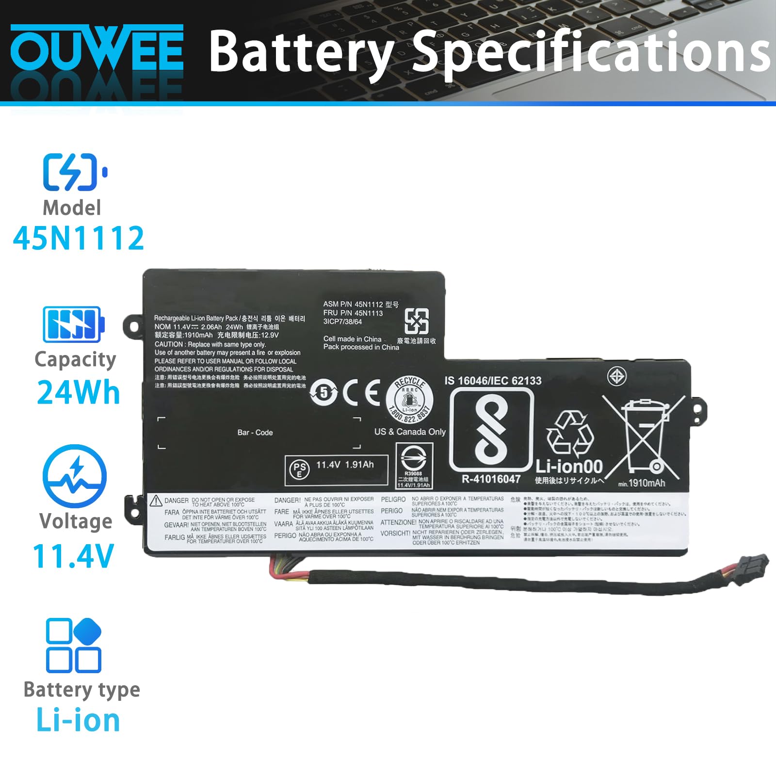 【Replacement Battery Part Numbers】45N1112 45N1113 45N1111 01AV459 45N1109 45N1773 121500145 45N1108 121500143 L16M3P71 SB10K97602 45N1110 121500144 .