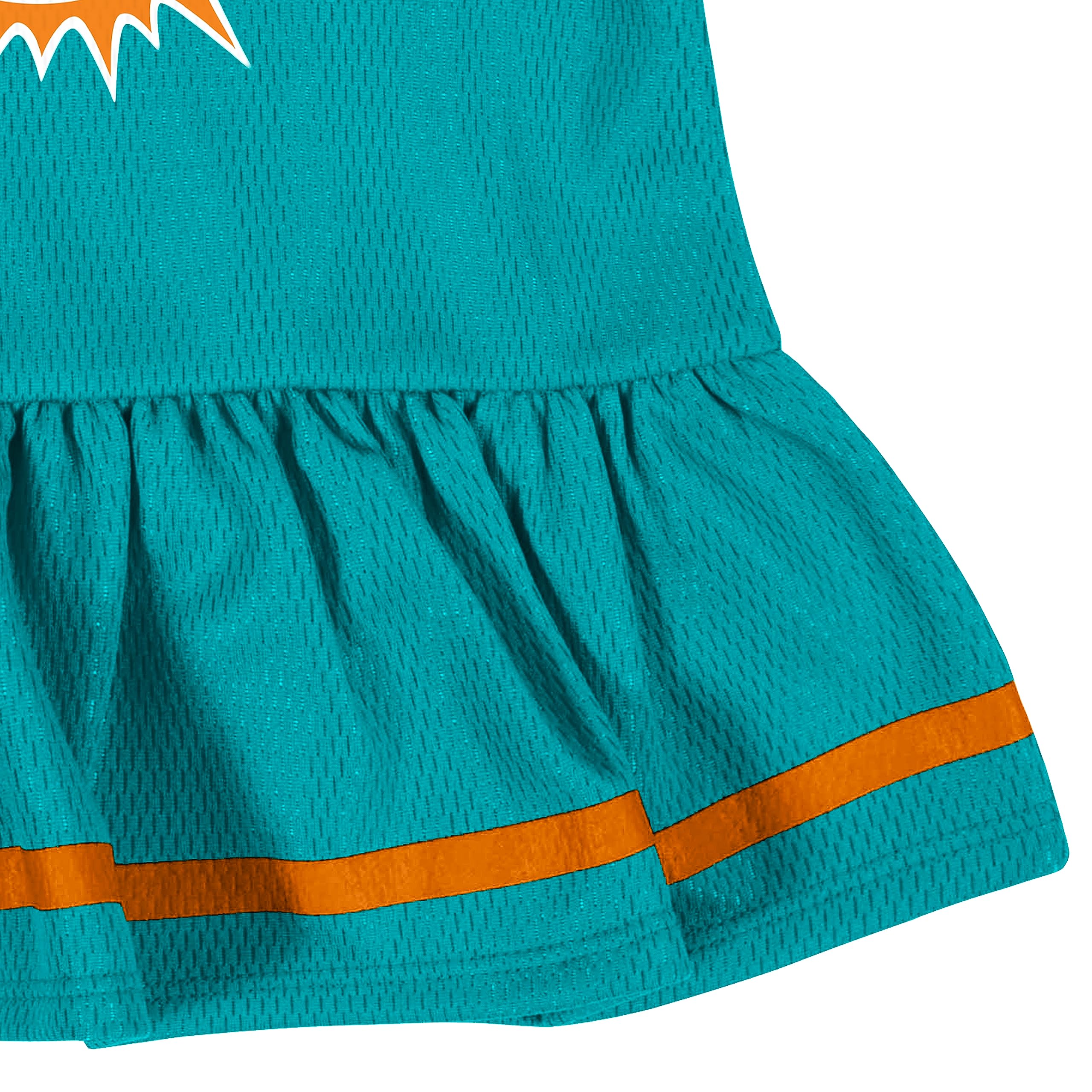 Description Don't leave any room for guessing which team your little girl pulls for on game day with this baby girls' dress and matching panty set! The 100% poly dazzle mesh and rib fabrics keep her comfortable on all of her adventures. The logo is proudly displayed on the front of the dress using big, bold screenprint artwork. Matching team colors help you create a look that's perfect for game day or any day you want to show your team pride! Just toss this outfit into the washer and dryer with the rest of the easy care items for quick and simple cleaning!