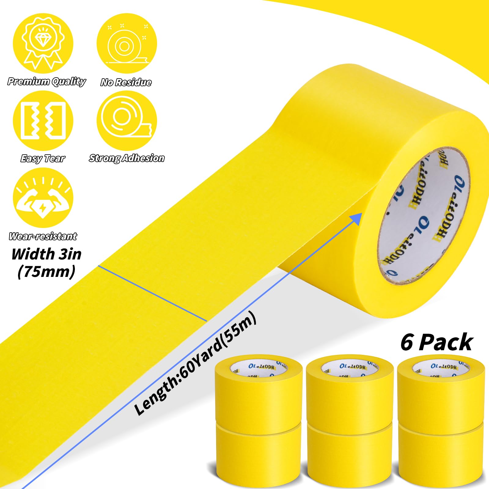 Painters Tape6 Rolls Yellow Painters Tape Bulk 3 inch x 60 Yards, Total 360 Yd, Painters Masking Tape No Residue Wall Painting Tape Artist Tape Trim Edge Finishing Tape for Wall Painting Decoration DIY Supplies