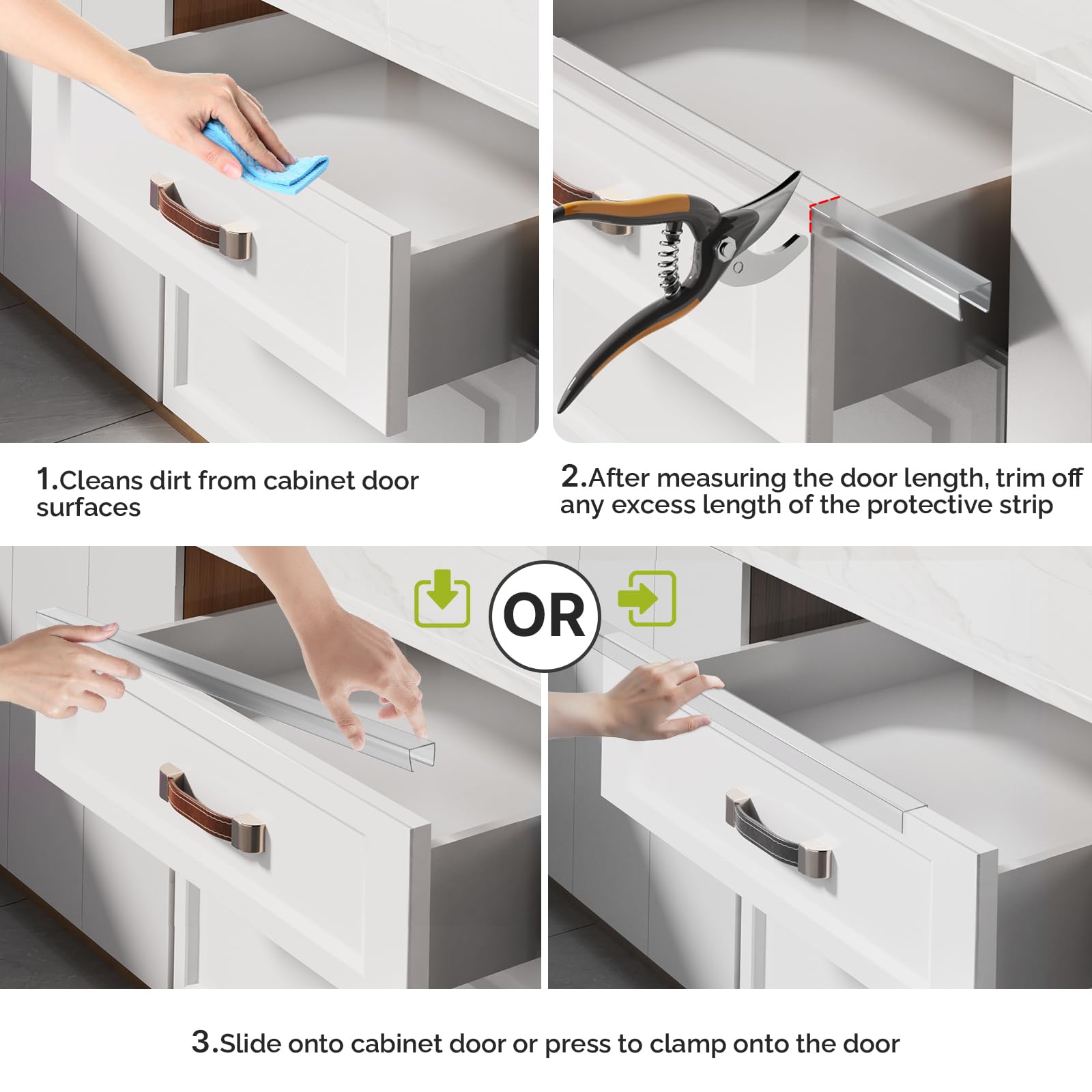Smart design: We've added a fixed soft rubber groove on the inner side of the protector strip to keep it securely in place even after long-term use. Plus, this design helps prevent any damage to the cabinet door during installation.