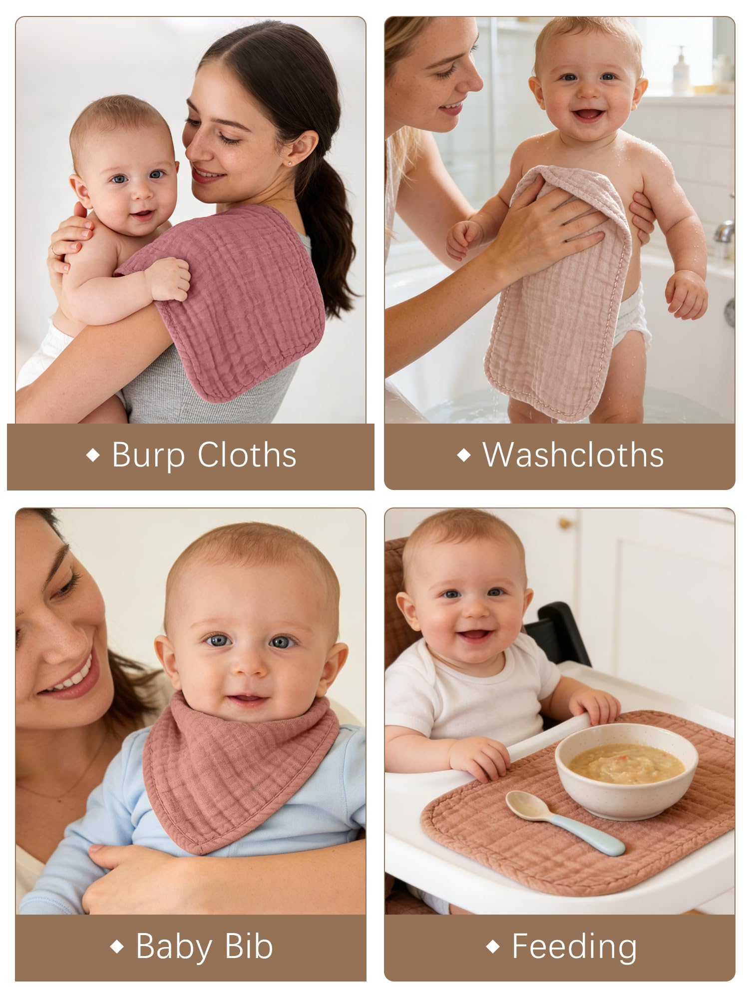 💎ULTRA ABSORBENT- These washcloths are perfect for catching spills and drools, thanks to the ultra-absorbent 100% cotton muslin fabric. It feels just like touching a soft cake, truly a baby essential item.