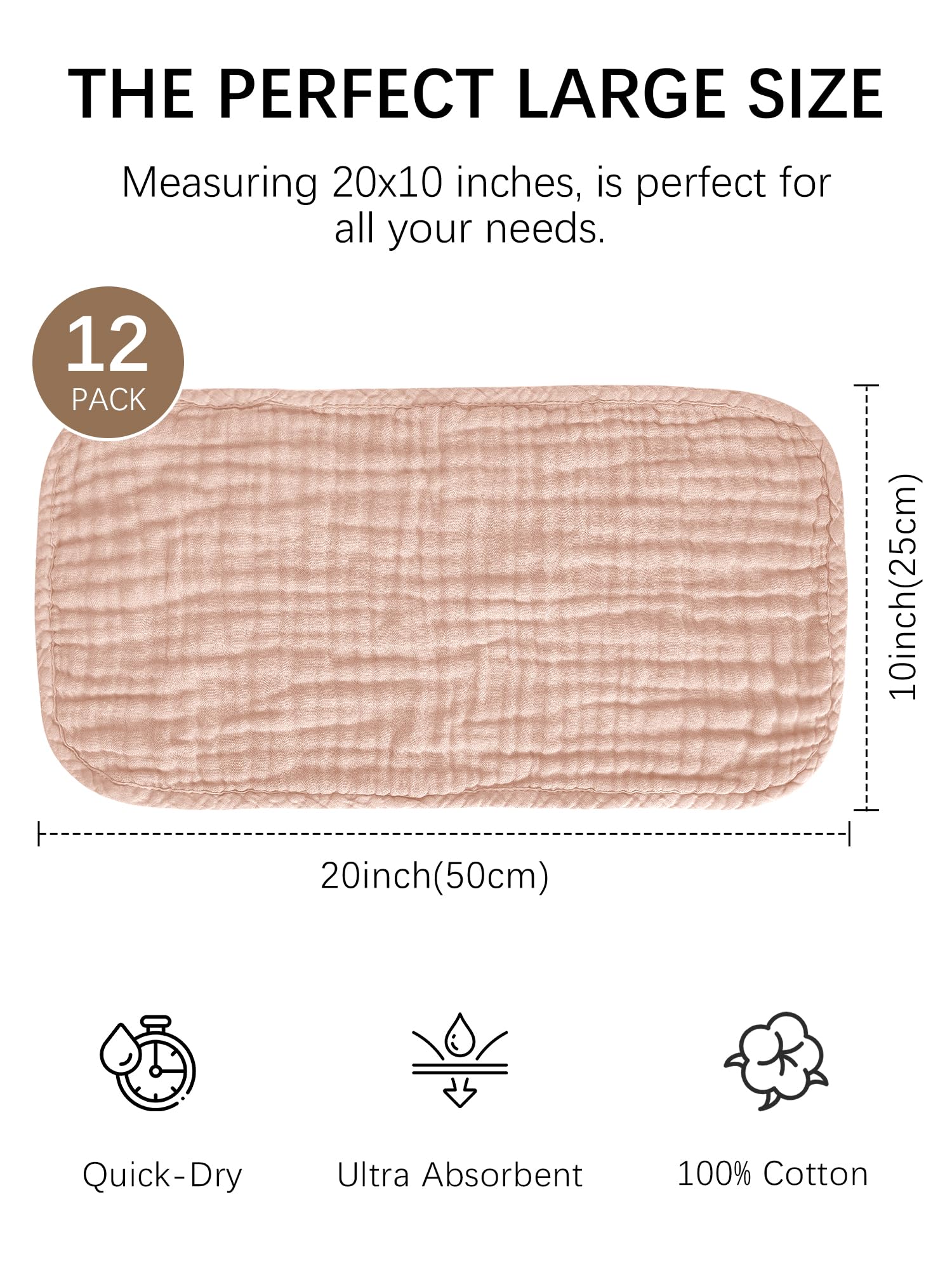 💎ESSENTIAL ITEM- Our multi-functional muslin burp cloth, measuring 20x10 inches, is perfect for all your needs. Made of 100% pure natural muslin cotton, it is soft, breathable & skin-friendly making it ideal for a baby's sensitive skin.
