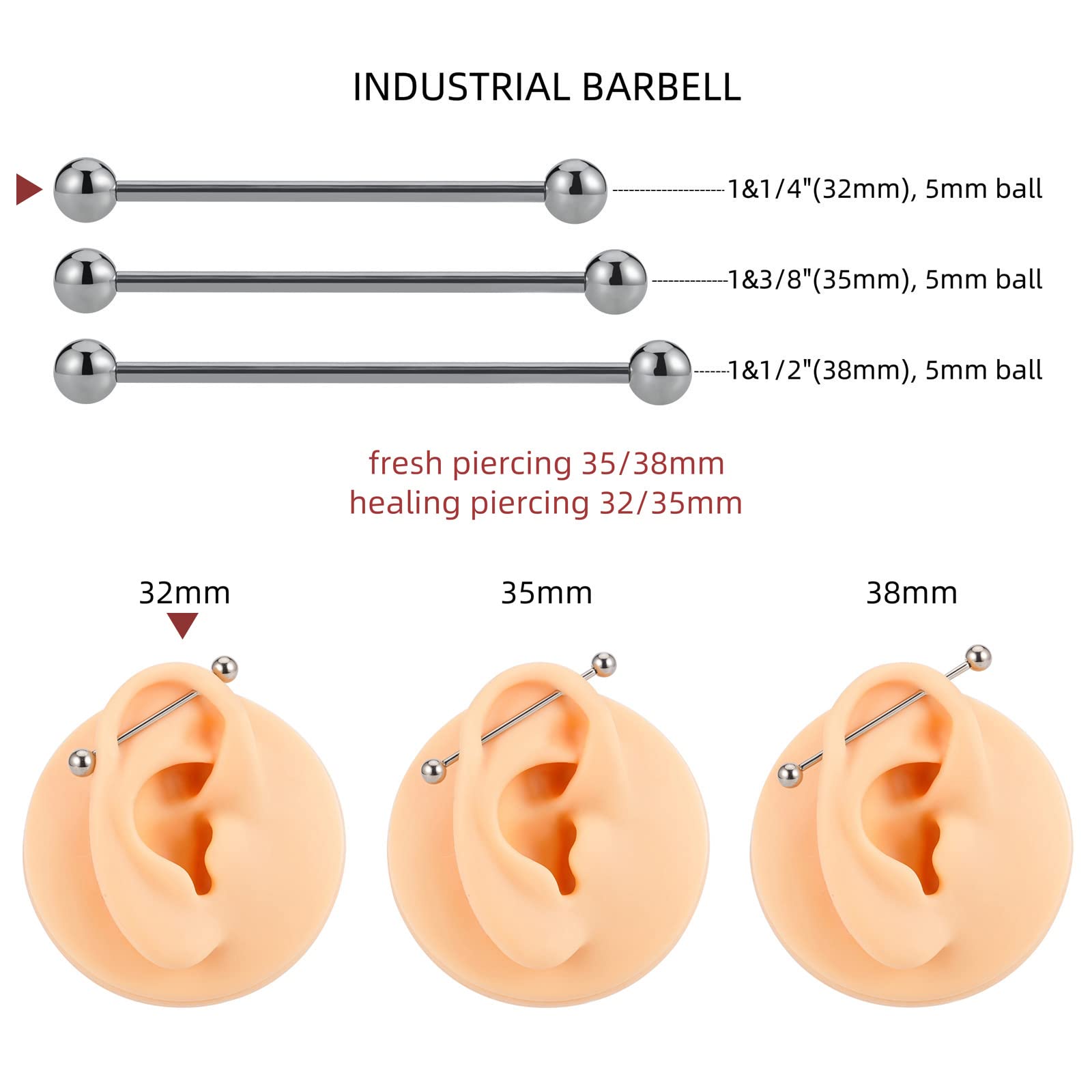 1. [ Size ]: 14G(1.6mm) * 1&1/4"(32mm) * 5mm, This Size Is Suited For Nipple And Tongue. If You Have No Idea, Please Ask Your Piercer Or Contact Us.
