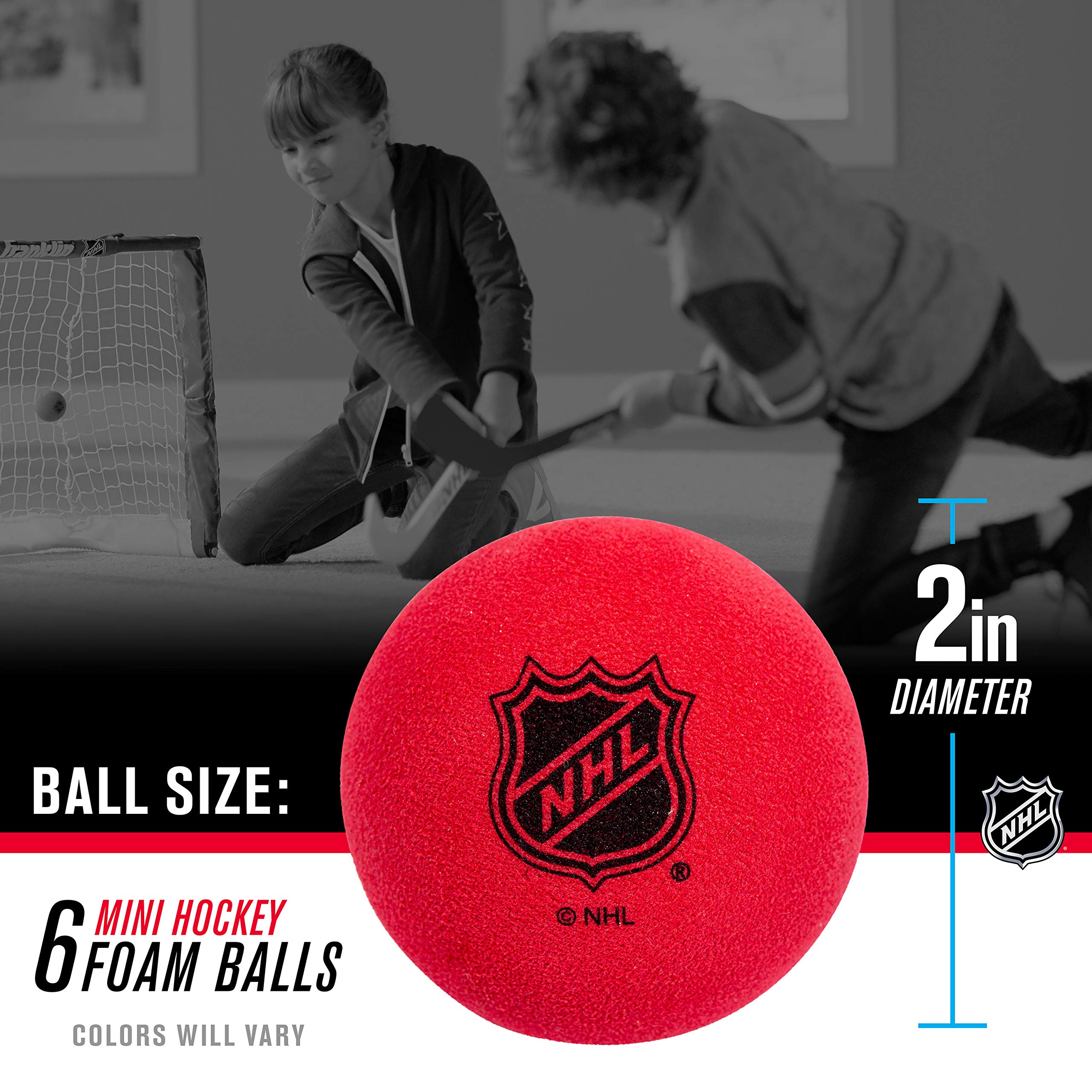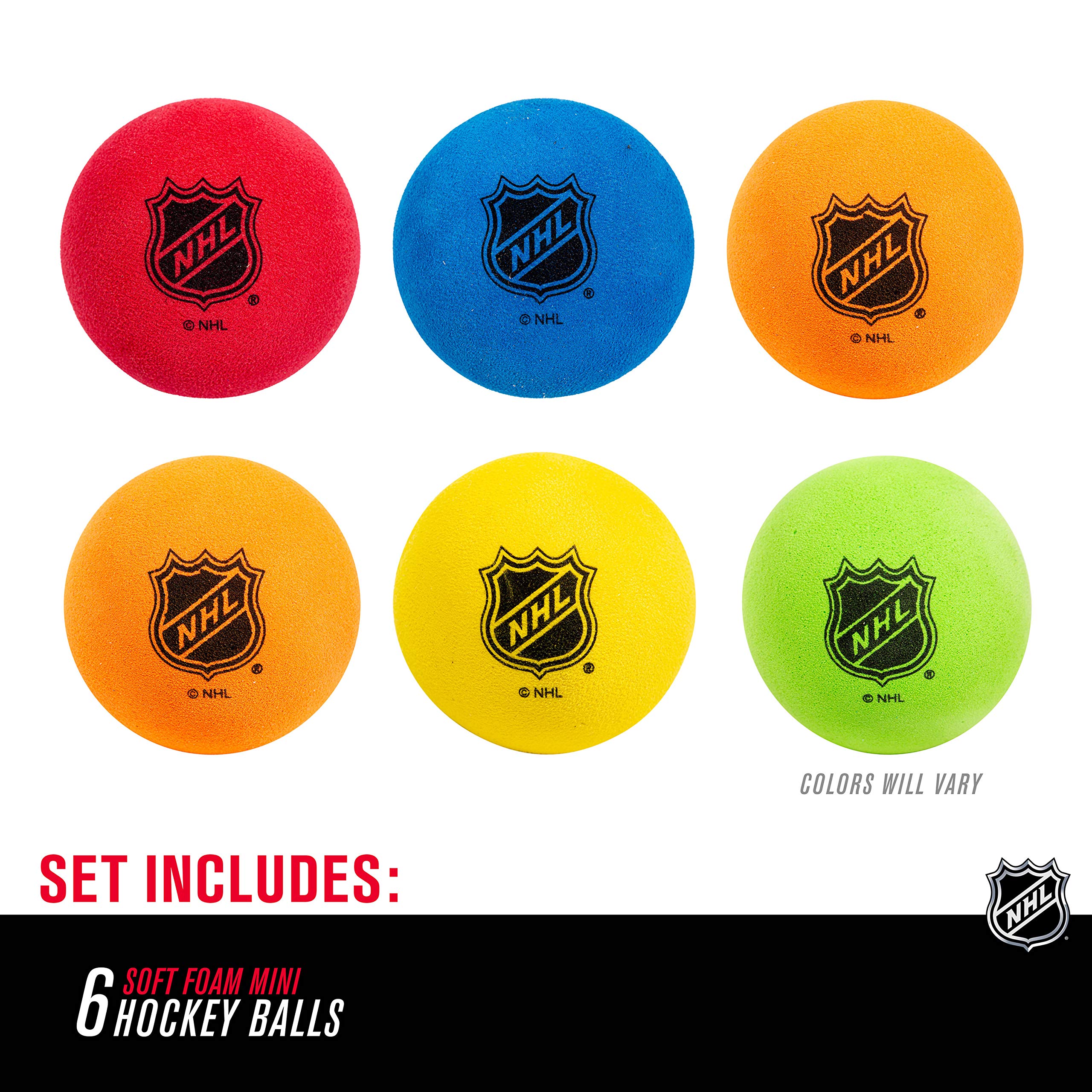 6 COLORED BALLS: This set comes complete with 6 colored mini hockey balls so you have plenty of replacements