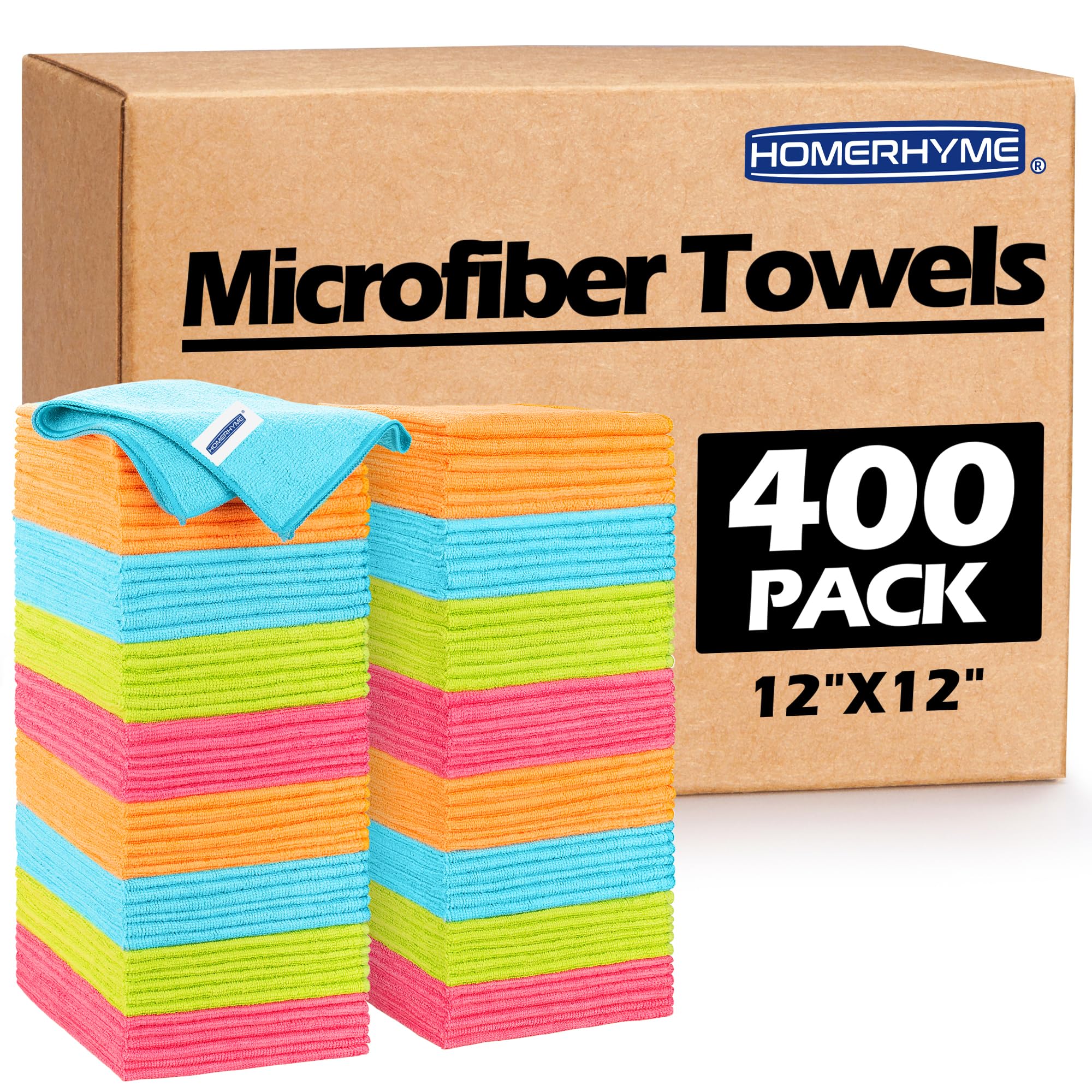 Great for Multi-purpose Jobs: Total 400 Pack multi-purpose cleaning cloths for each set. You can use them for dusting, wiping up spills, cleaning and drying dishes, polishing glass, cleaning stainless steel appliances, wiping down car interiors, and more. And each set features 4 assorted colors (Orange, Blue, Green, Red), so you can purchase it if you'd like different colors for different cleaning tasks.
