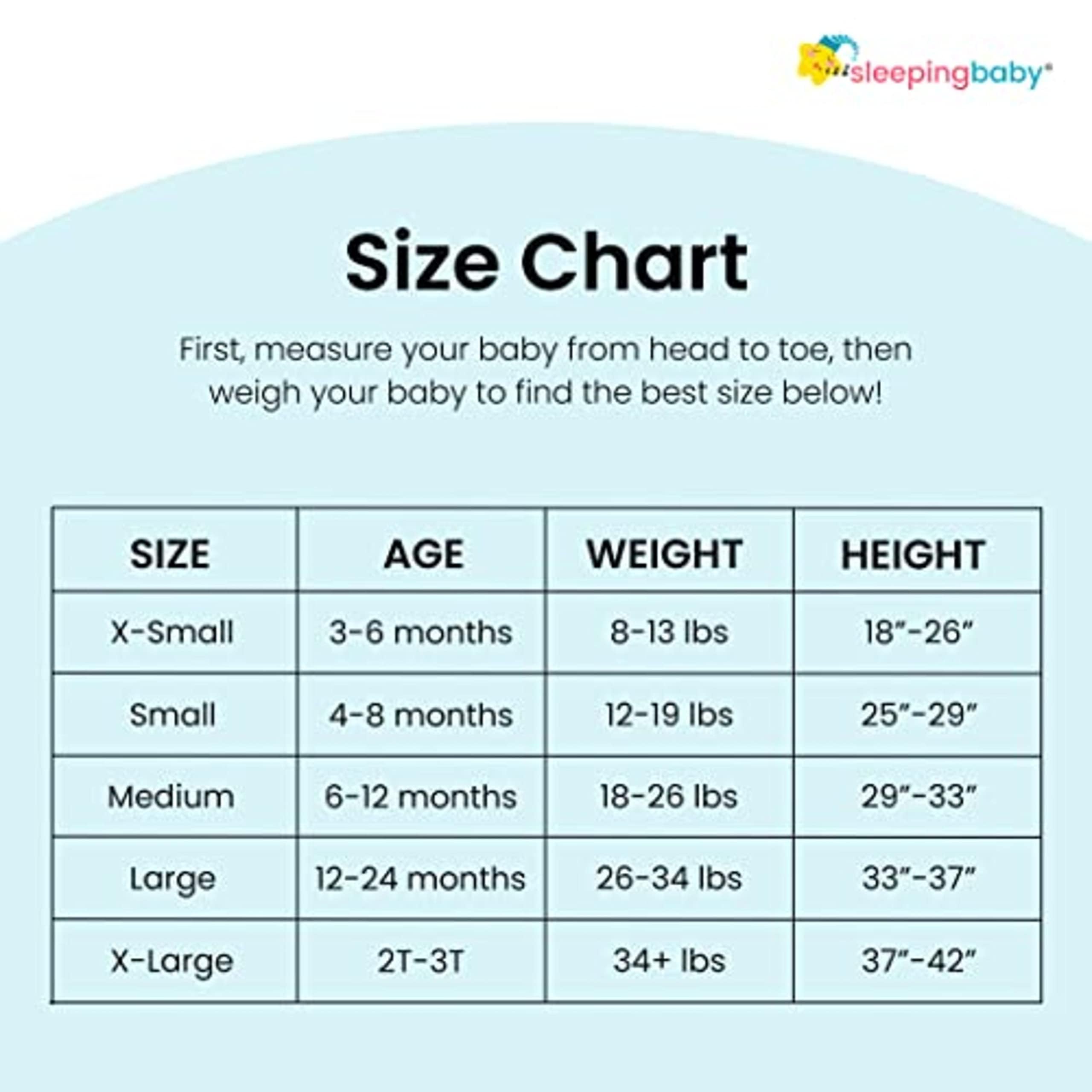 Get the Best Fit for More Restful Sleep: To ensure a snug fit, we recommend sizing down in our transition swaddles if your little one is in between sizes. Sleeping Baby swaddles should have slight resistance when your baby lifts their arms