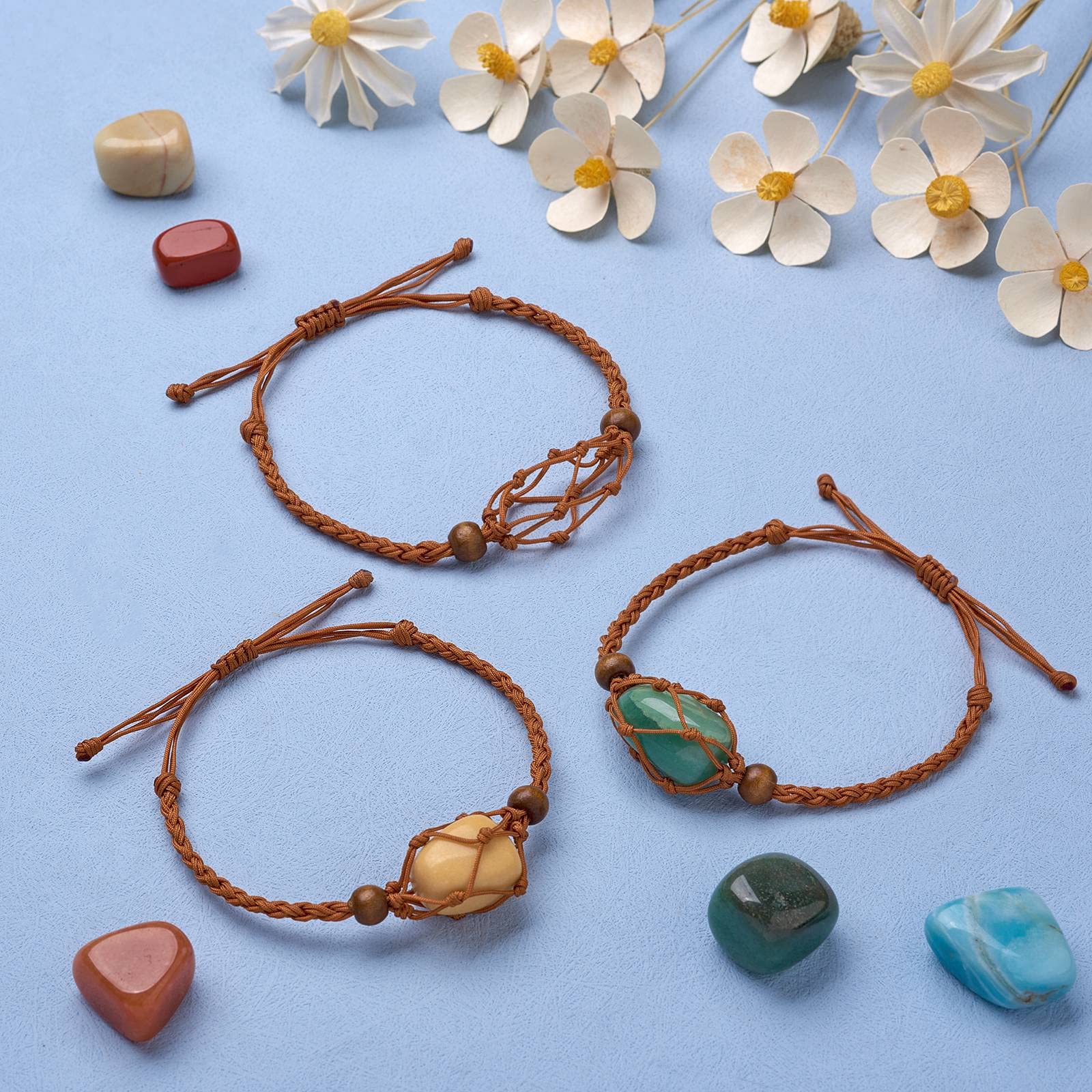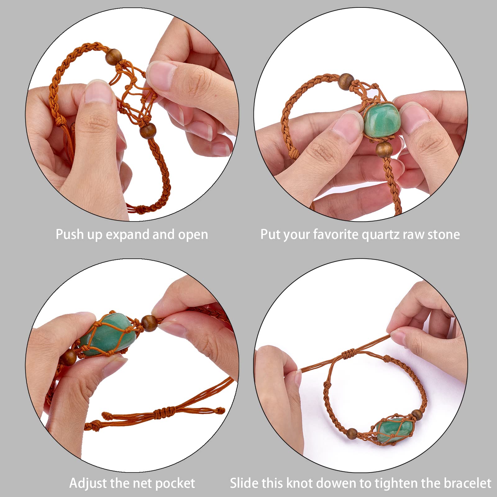 【Bracelet Cord Empty Stone Holder】You will get 4 pieces of saddle brown empty crystal bracelet holder (single net), it can hold your ornaments like crystal, quartz, beads and pendants etc. securely, just screw and clip them together, You will get a personalized jewelry bracelet of your own.
