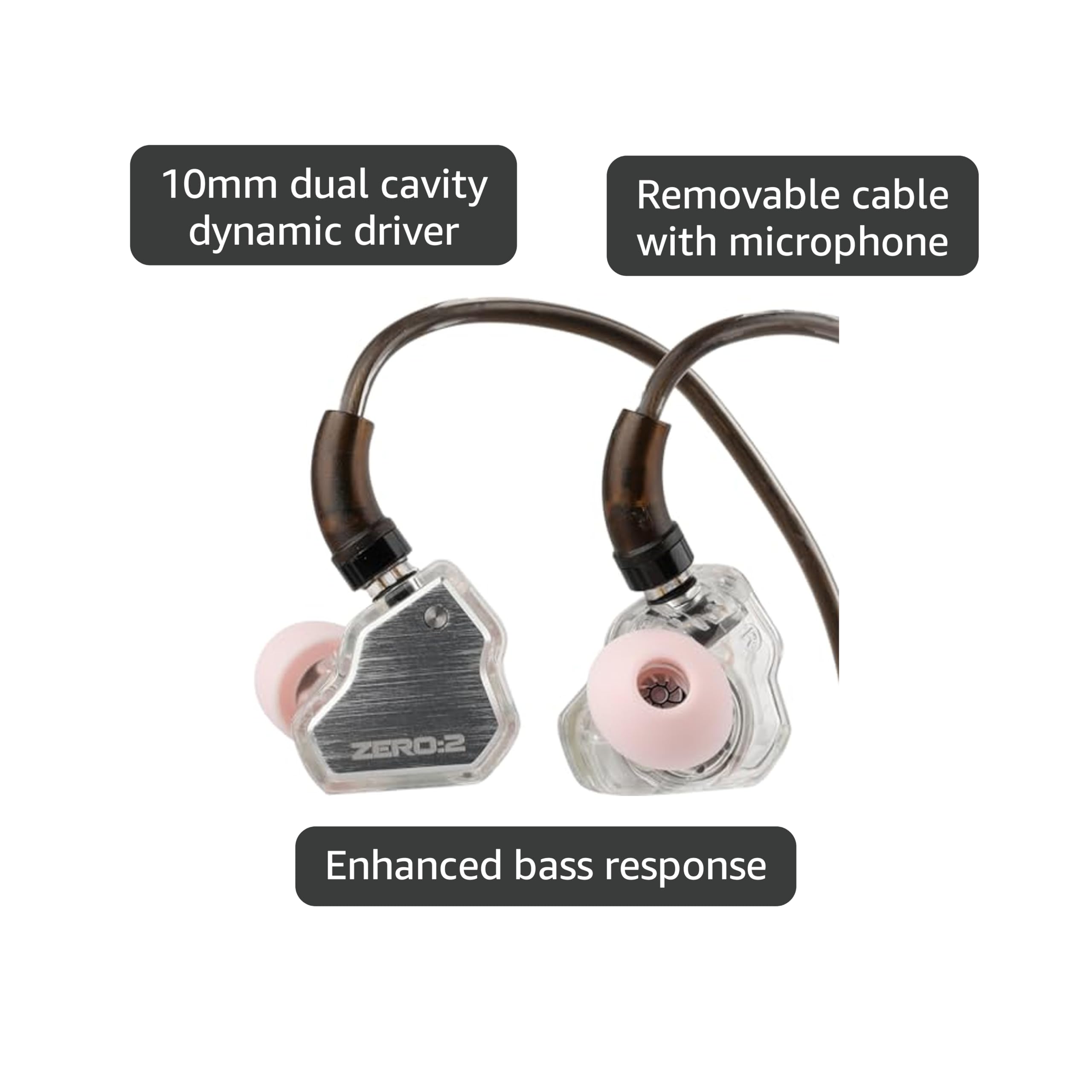 ใ๐๐๐ฐ ๐๐๐ฆ๐ฆ ๐๐ฒ๐ง๐๐ฆ๐ข๐ ๐๐ซ๐ข๐ฏ๐๐ซใThe improvements in the tonal characteristics of the Zero:2 were made possible thanks to a newly developed 10mm dual cavity dynamic driver. With an upgraded PU+Metal composite diaphragm, the driver is significantly more responsive, allowing faster diaphragm movement. This allows for harder hitting bass, while maintaining crispness and precision with each note. With a frequency range of 10Hz to 20kHz, the improvements in the new driver is immediately noticeable. The slight warmth in the low-mids provides a fuller sound to instrument and vocal fundamental frequencies, yet still keeping the melodies clean and free from bass bleed.