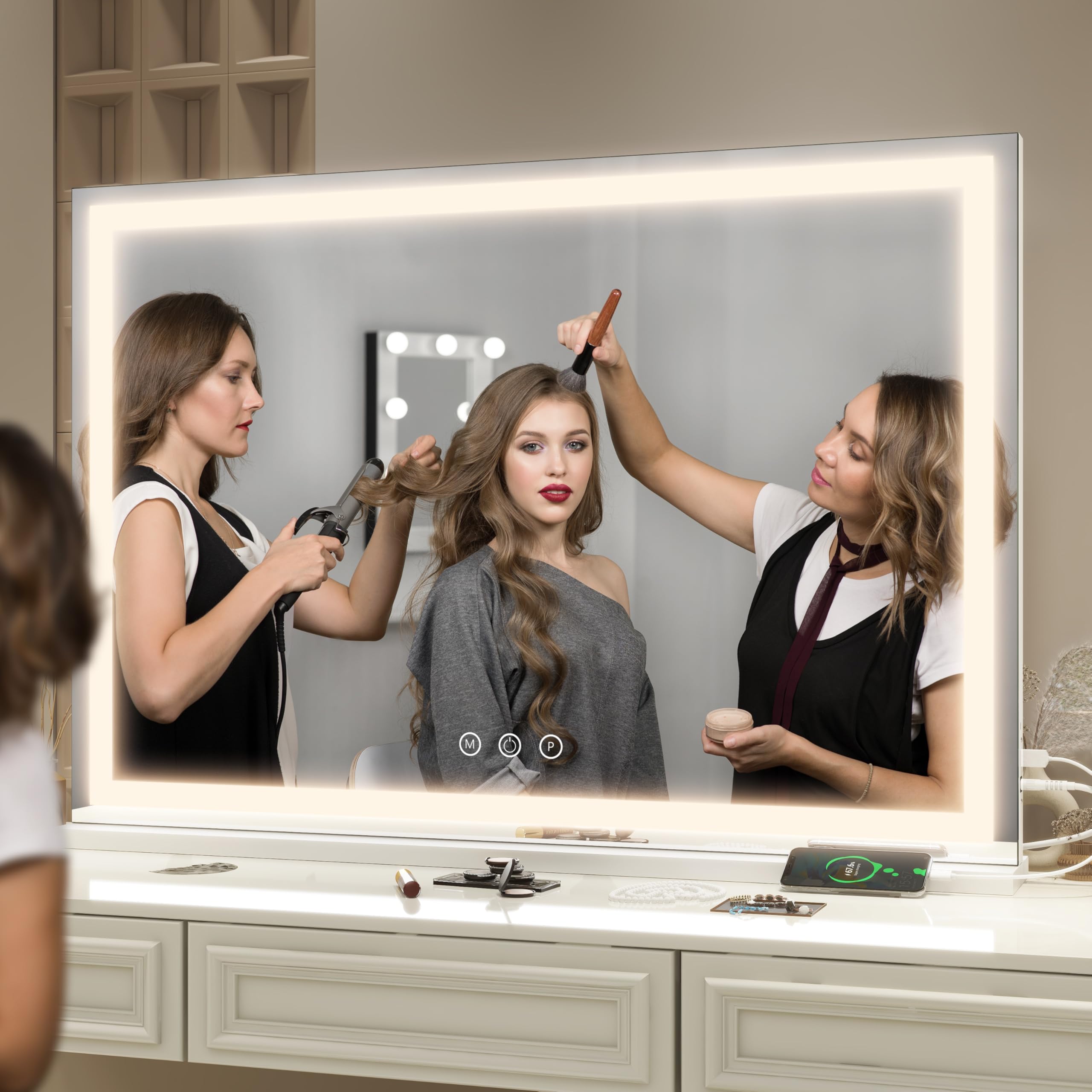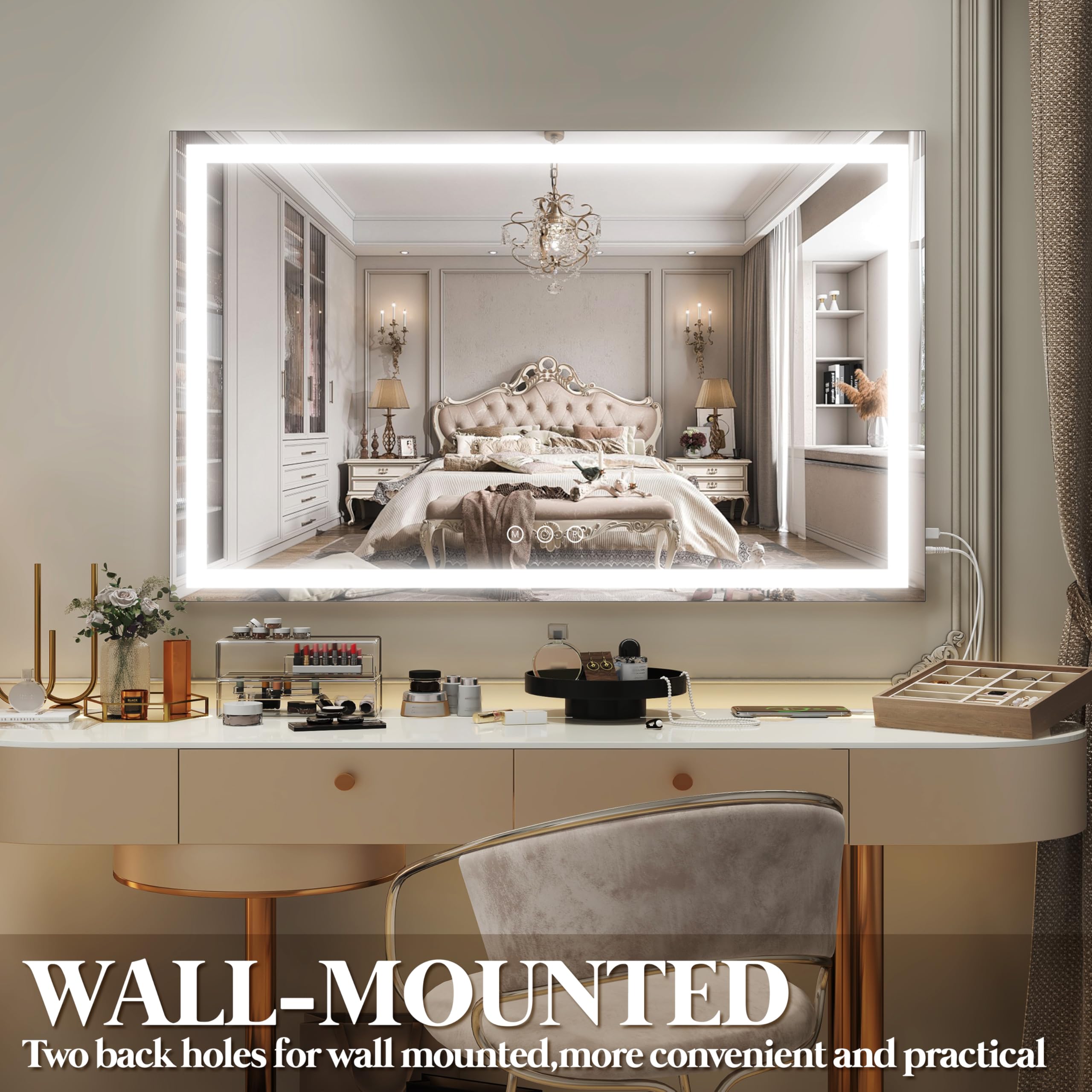 🌸【Minimalistic Design】 The Vanity mirror with 40"W X 28"H provides a perfect upper body view. Features makeup mirror is perfect for tweezing & grooming with accuracy