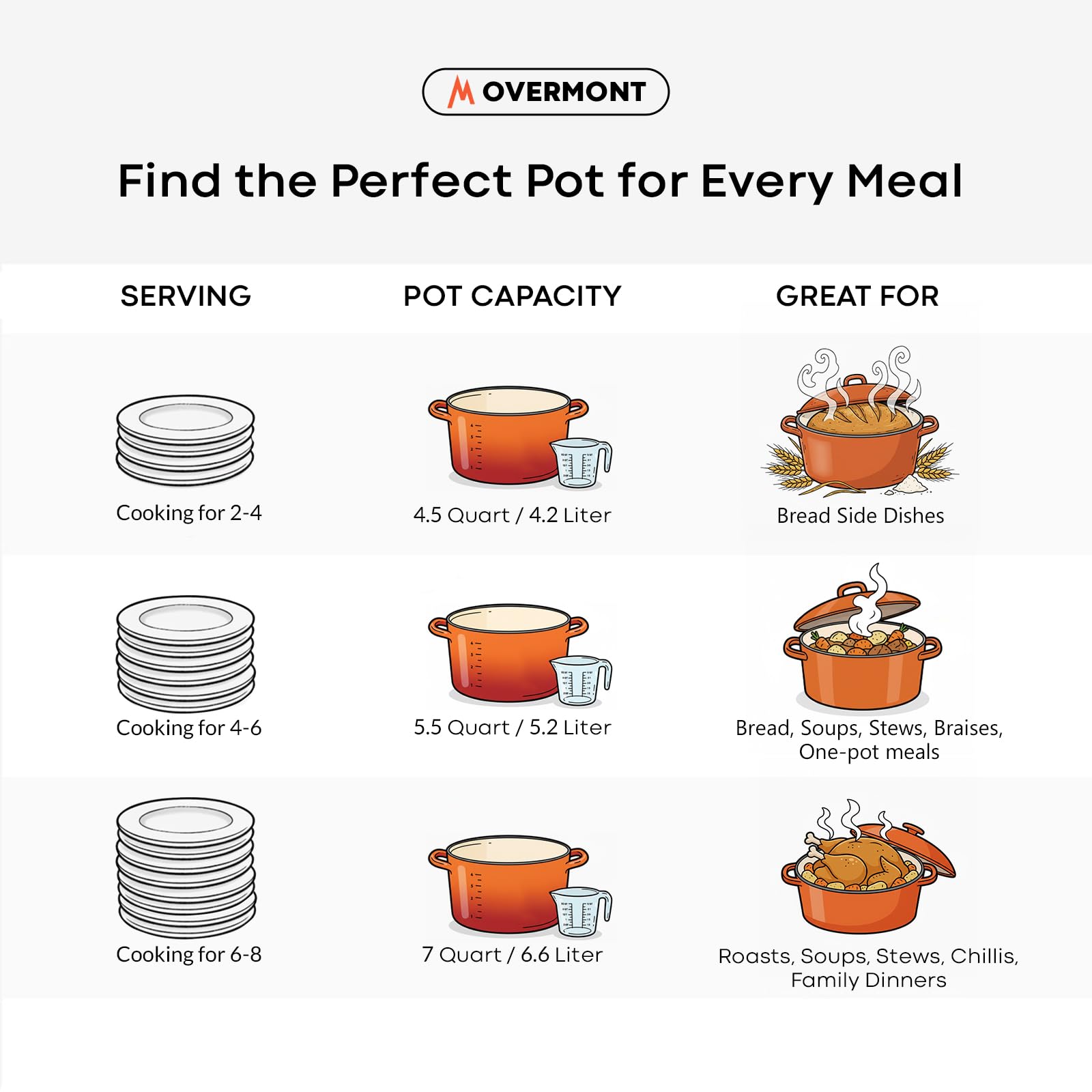 【Universal Compatibility】Our premium enamel Dutch oven is designed to shine on various stovetops, including gas, electric and ceramic. Plus, it's oven safe up to 500℉, offering an exceptional range of cooking options. From stewing to roasting, this Overmont upgraded Dutch oven can handle it all.