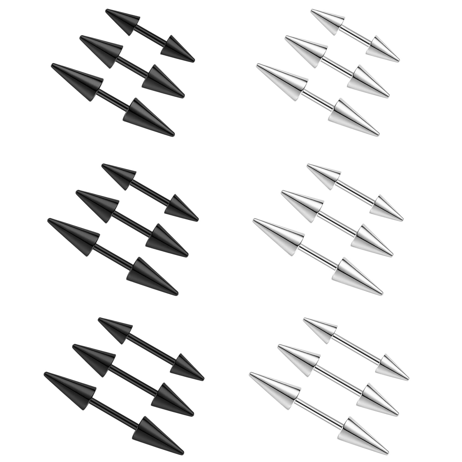 ❀Spike Eyebrow Piercing Size——Spike vertical labret piercing jewelry gauge: 16g(1.2mm); Rook jewelry bar length: 6/8/10mm. Lip jewelry Ball/ Cone Size: 3/6/8/10mm. Be careful the spike lip piercing long cone when using.