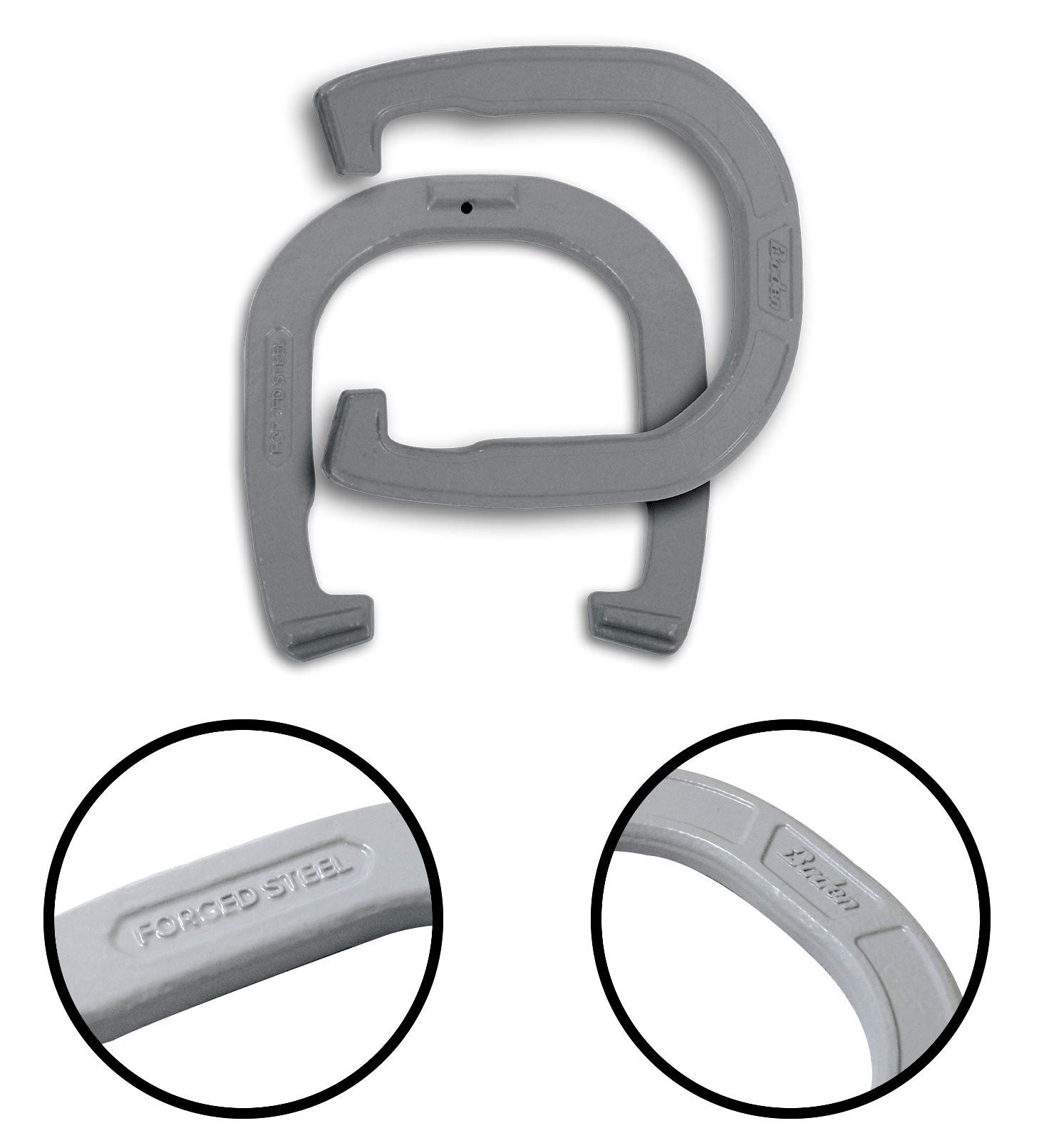 This is the complete set to play the classic game of horseshoes. Baden's newly re-engineered forged steel horseshoes are eligible for tournament or league play for the most serious horseshoe players. Our Champions Horseshoe set comes with (2) black forged steel horseshoes, (2) grey forged steel horseshoes, (2) 24” long steel stakes, and (1) nylon bag with reinforced pockets and handle. This set has been tested and approved by the National Horseshoe Pitchers Association (NHPA).