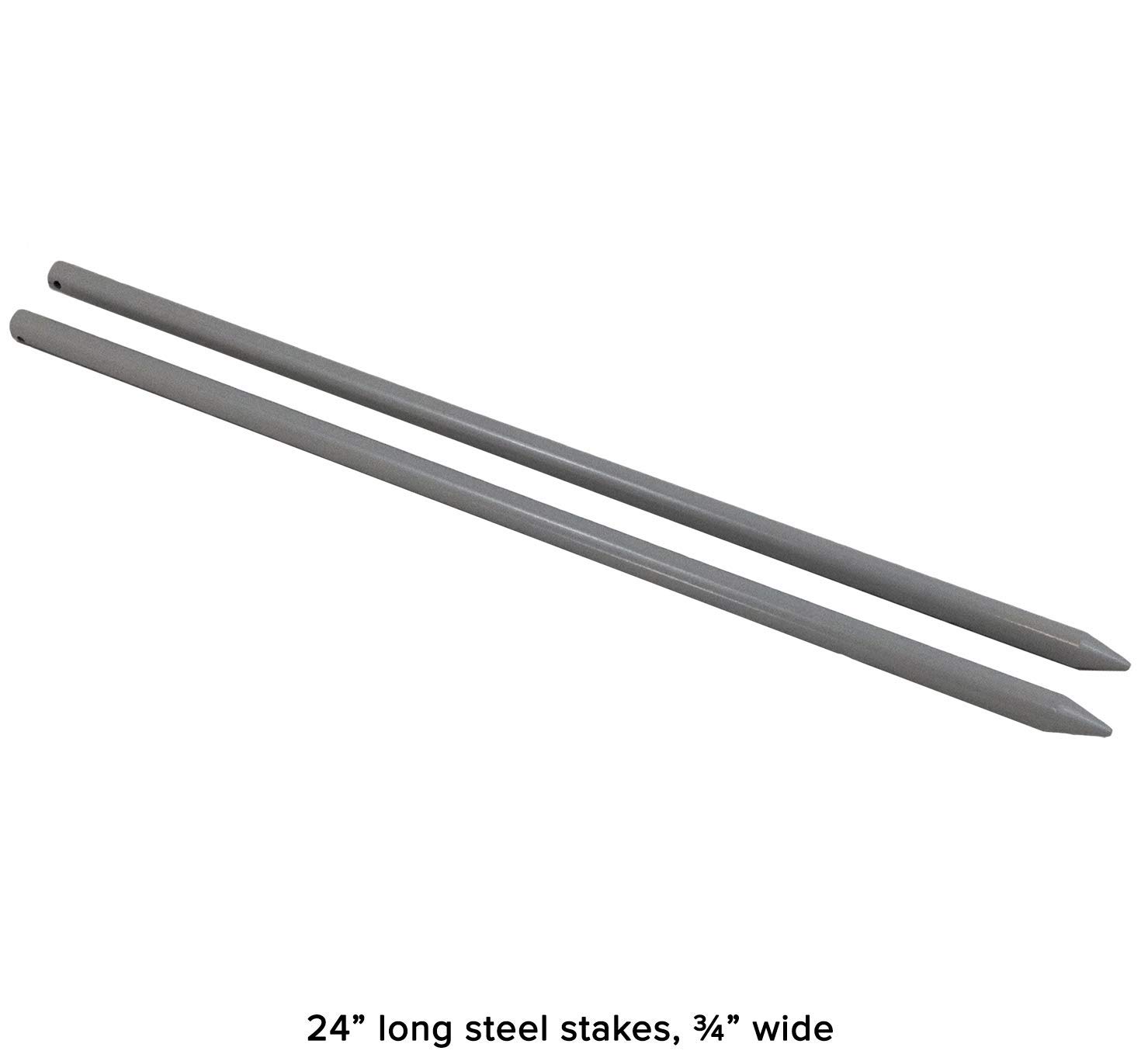 Each horseshoe is medium weight 2. 25 lbs. , steel stakes are 24” long and ¾” wide