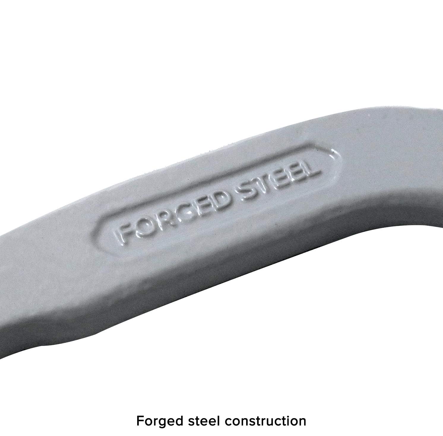 Forged steel construction for maximum toughness and enhanced durability. Forged steel is stronger than cast iron or traditional steel construction