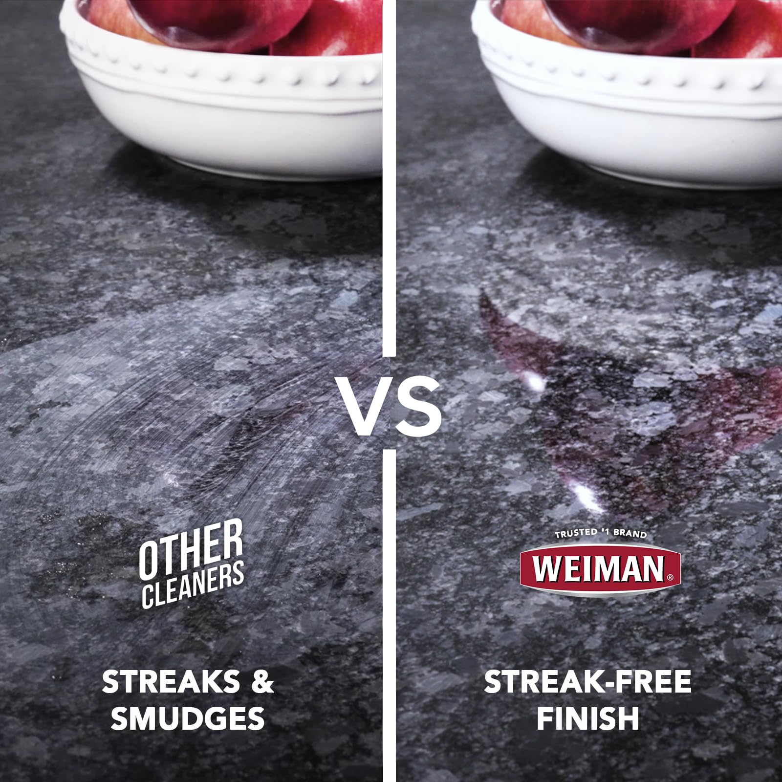 Enhance the natural beauty of stone surfaces in your home with the Daily Weiman Granite & Stone Cleaner & Polish Trigger Spray. Here at Weiman, we have developed cleaning products that go beyond simply cleaning to beautify and protect each of your delicate difficult to care for surfaces. Instantly reverse dullness & enhance the brilliance of your stone surfaces with Daily Weiman Granite & Stone Cleaner & Polish Spray. Its superior polishing power brings out a whole new level of luster and helps resist stains. A natural cleaner engineered with a pH neutral specialized formula that instantly shines dull, faded counter tops & removes water marks without leaving behind streaks or damaging the surface. This thick rich polish seals, polishes and protects granite, marble, soapstone, quartz, quartzite, slate, limestone, Corian, travertine, laminate, tile & concrete. The Weiman Granite & Stone Cleaner & Polish Trigger Spray is designed with a non-toxic, non-acidic formula that will effortlessly polish without leaving any streaks on your sink, table or countertops. Effortlessly lift dirt, soil, grease and grime to enhance your brand new surfaces or bring life back to your old stone surfaces. Reveal the original brilliance of your natural stone surfaces & make the Weiman Granite & Stone Cleaner & Polish an essential for everyday treatment. Weiman wants each of the surfaces in your home to look its best. That’s why we have developed cleaning products that go beyond simply cleaning to beautify and protect each of your delicate, difficult to care for surfaces. From stainless steel to leather to granite, each of our products is formulated specifically for one surface and one surface only; allowing you to achieve the perfect results that your home deserves. A clean home is great, but we want it to look more than clean, we want it to look spectacular! Weiman leaves a polishing shine and acts as a protector where other cleaners do not compare.