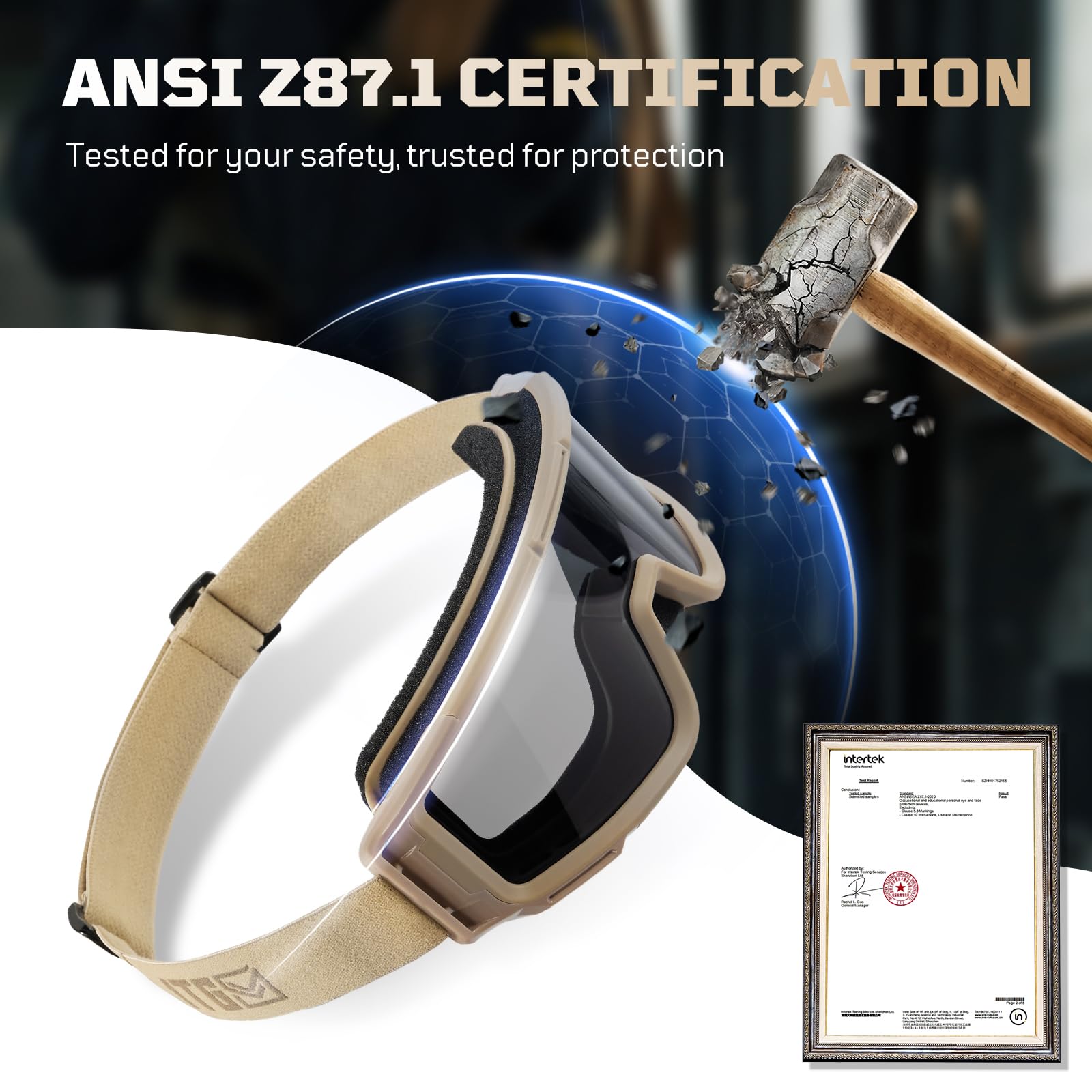 Tested for Safety: Tactical Safety Glasses - ANSI Z87.1 certified lenses ensure superior impact resistance, offering unmatched safety for your eye protection. Stay protected without compromising on style. #SafetyFirst #TacticalEyewear