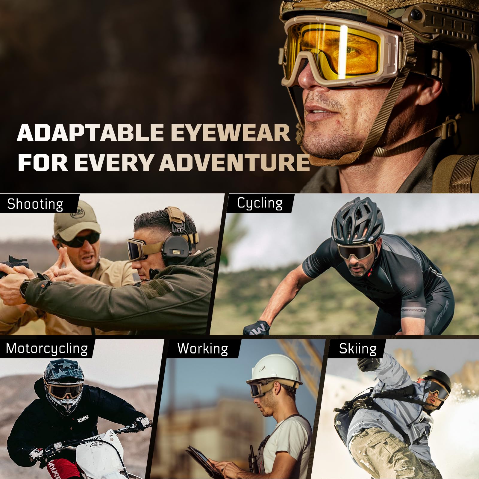 Versatile Outdoor Performance: Ideal for various outdoor pursuits such as tactical missions, paintball, shooting, skiing, cycling, and more, these glasses cater to diverse outdoor scenarios