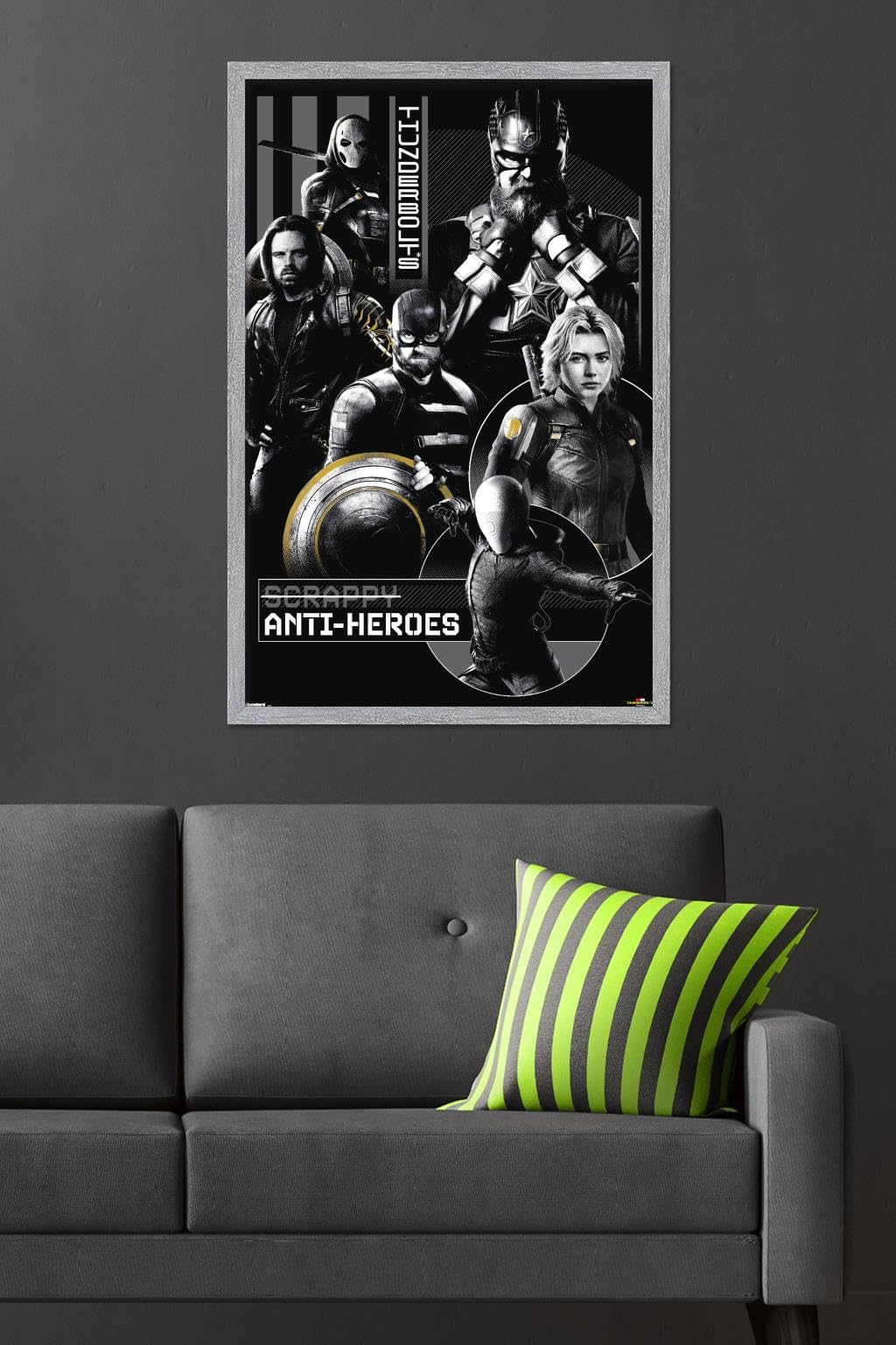 Allposters framed posters are everyone's favorite room decor! The clean, modern design and premium satin finish of this Marvel Thunderbolts - Group Wall Poster will make a bold wall decor statement in any room. Decorate the bedroom, bathroom, kid's room, living room, office, dorm, and more! Our framed posters are lightweight and easy to hang using the sawtooth hanger so you'll be able to enjoy it in no time. Every one of our framed posters are proudly Made in the USA. Add these decorations alongside the other accessories on your party supplies list too! Allposters's wall posters are the perfect way to dress up your parties. A framed poster makes a great gift as well! Whether it's for a birthday, Christmas, house warming or for your best friend, they'll love receiving a framed poster to show off their style.