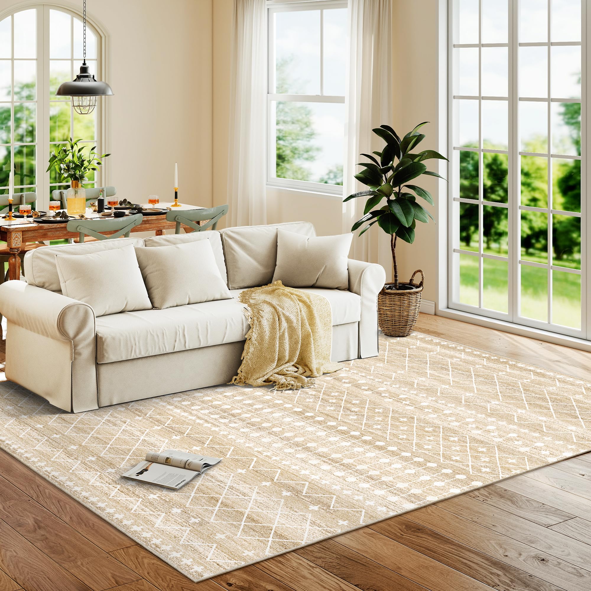 Non-Slip Backing Area Rug: Our rugs for living room features a non-slip TPR backing that helps keep the rug in place and securely fixed to the floor, reducing the risk of tripping.