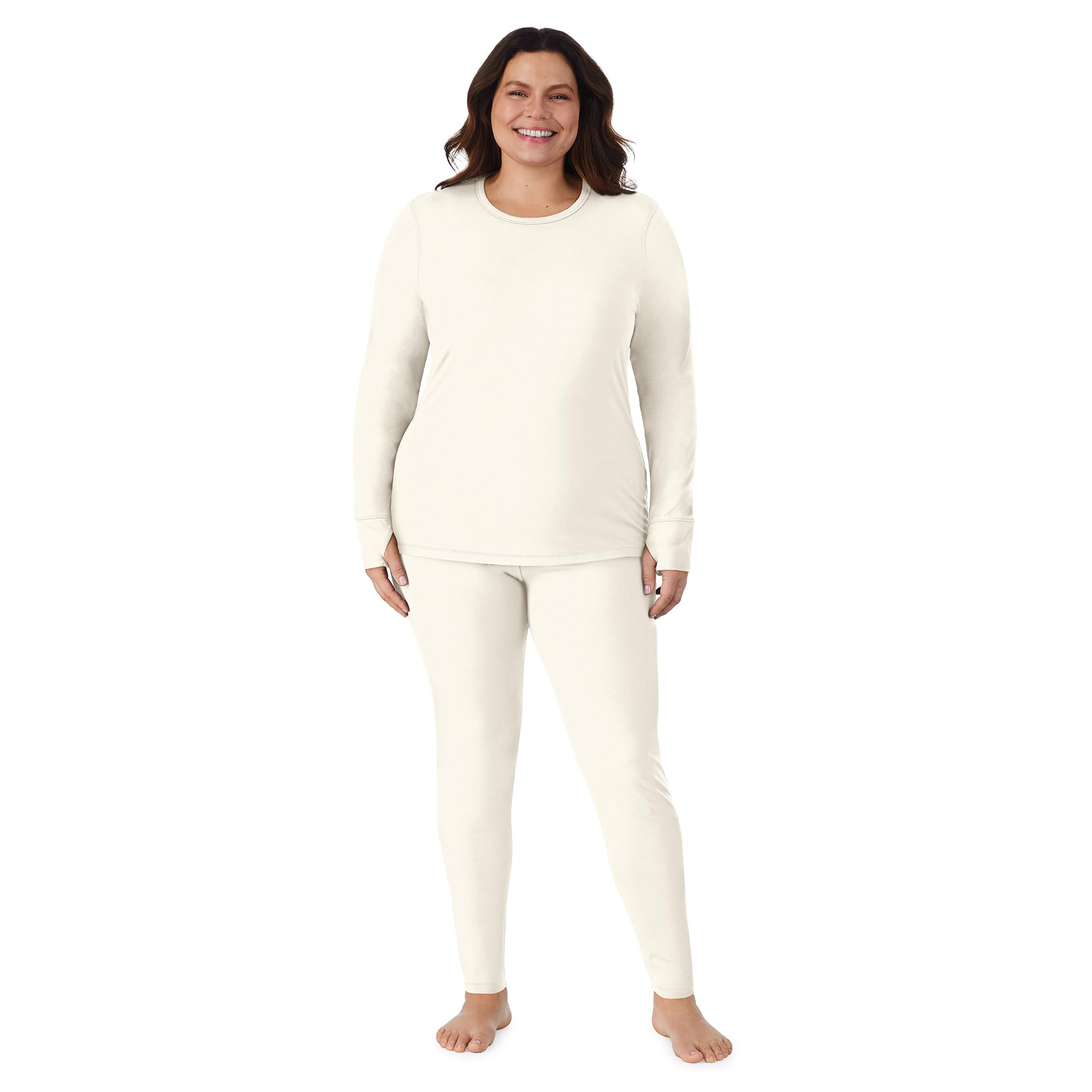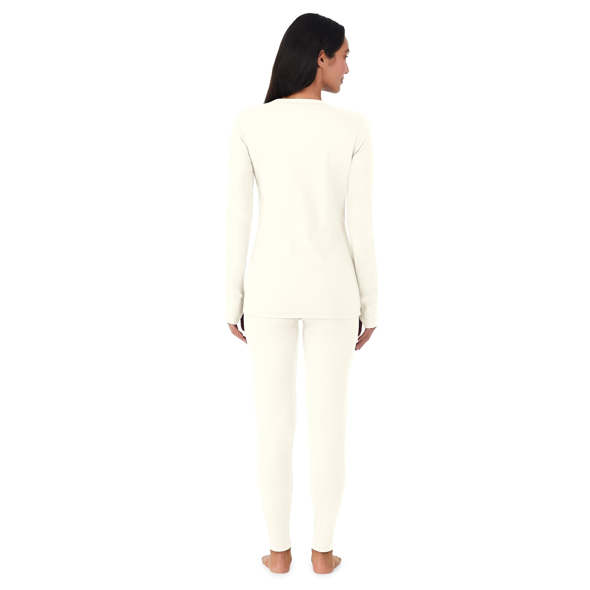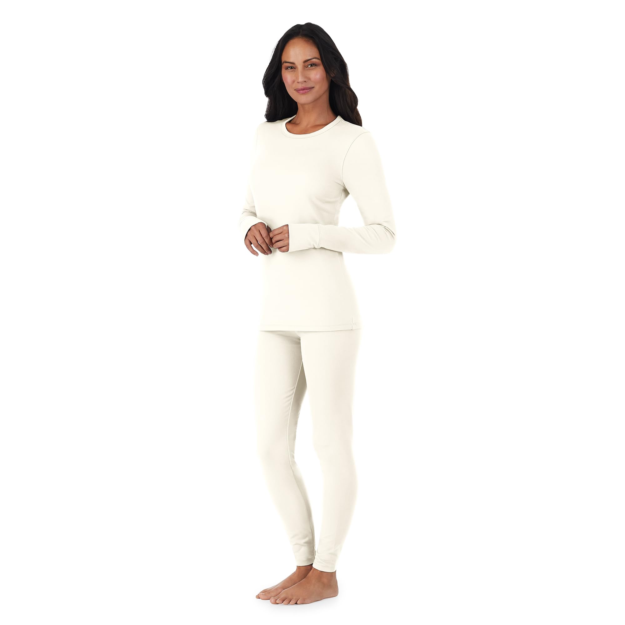 WARMTH IN MOTION: Designed to keep up with you on the go, this womens thermal shirt and leggings set features stretchy, flexible fabric for easy movement, a modern-rise waistband for a flattering fit, and functional thumbholes to lock in warmth. It’s tag-free for irritation-free wear and offers 50+ SPF UV protection - smart details for cold days with clear skies.