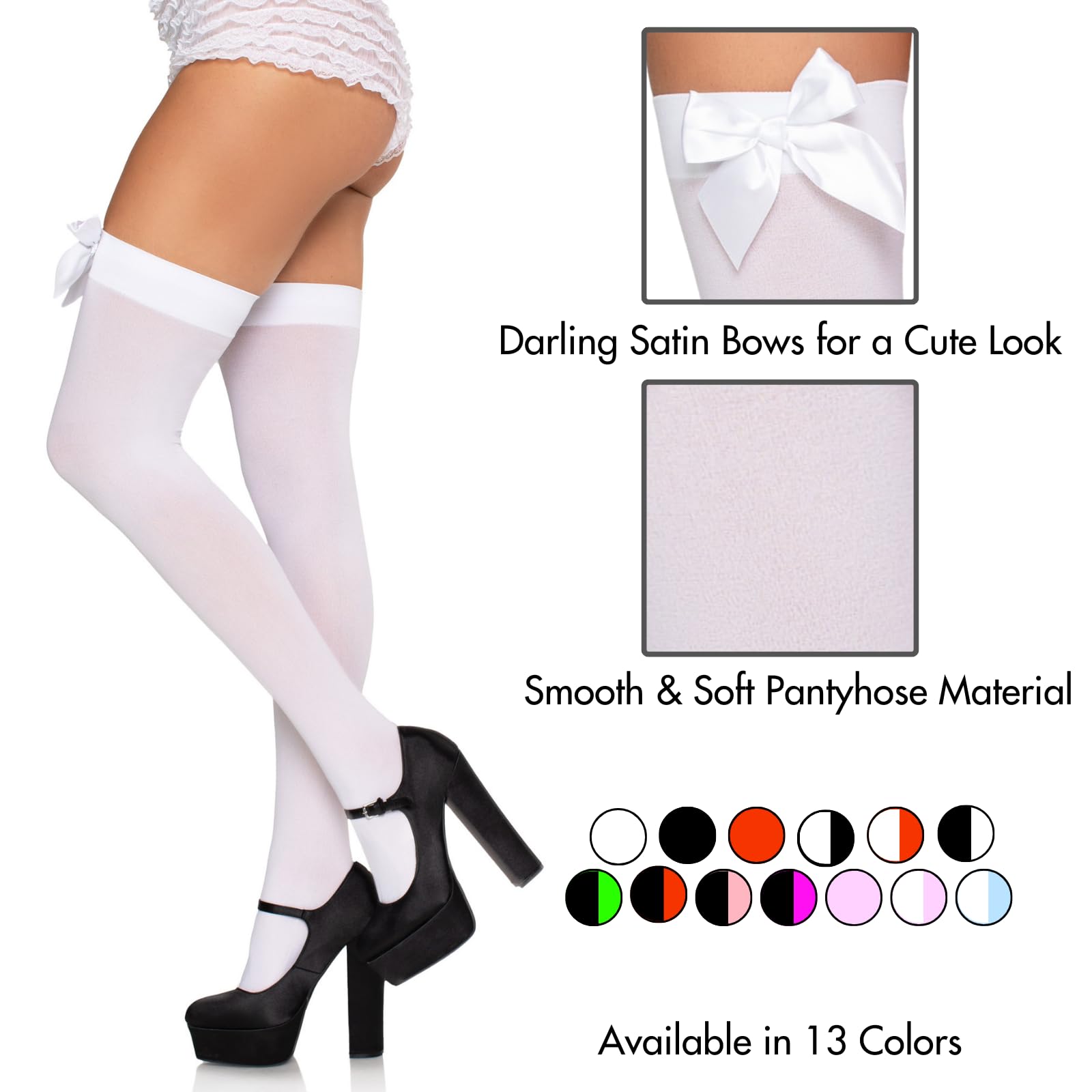 Take basic stockings and add a flirty touch; These opaque thigh highs with satin bow are next level gorgeous