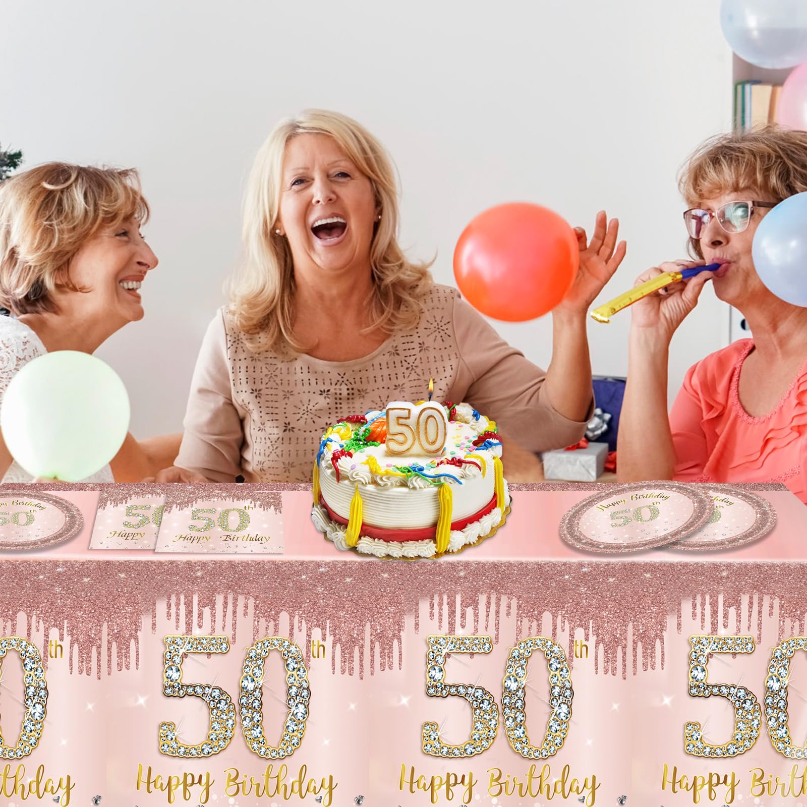 Exquisite Design: Birthday decorations for women are in rose gold theme color, stylish and romantic, delicate and elegant, perfect for ladies with taste. In the center is the eye-catching "Happy 50th Birthday", and the bottom is embellished with beautiful white diamond elements.happy 50th birthday decorations will amaze everyone!